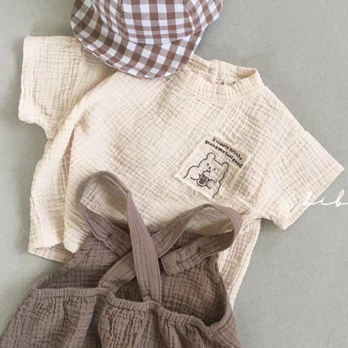 INS 유아 반팔 오버롤 2 피스 서양식 남성과 여성의 아기 옷 얇은 티셔츠 가방 뚱뚱한 옷 트렌디 세트
