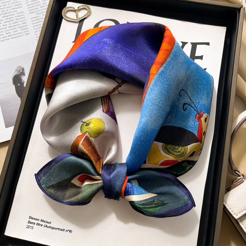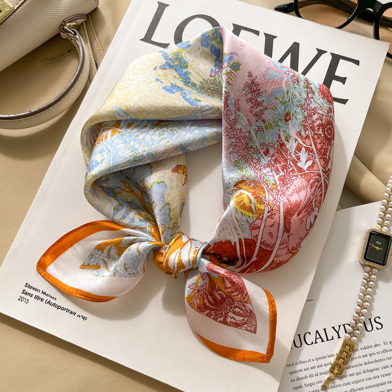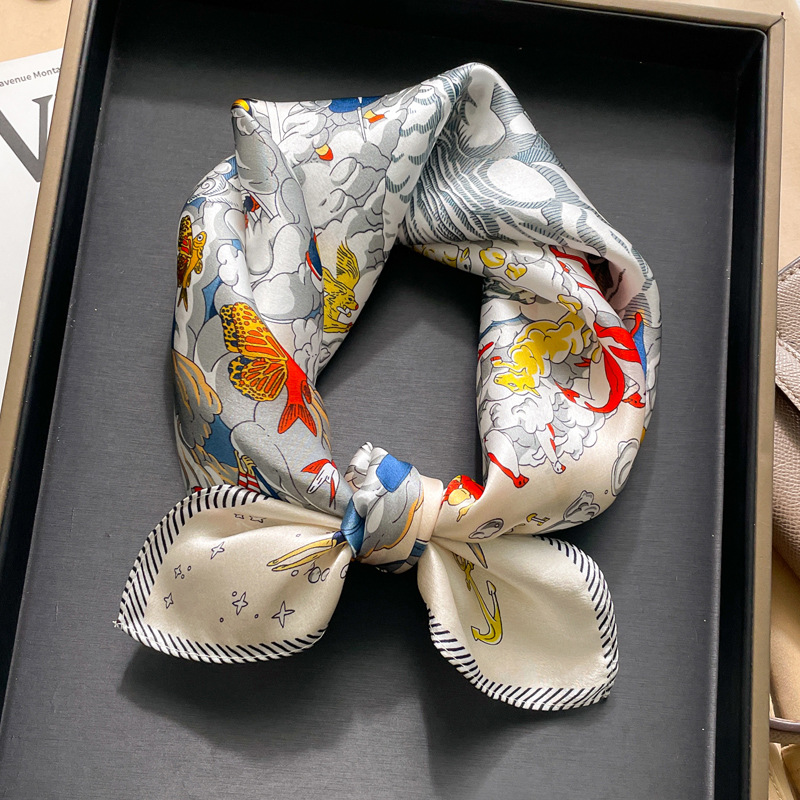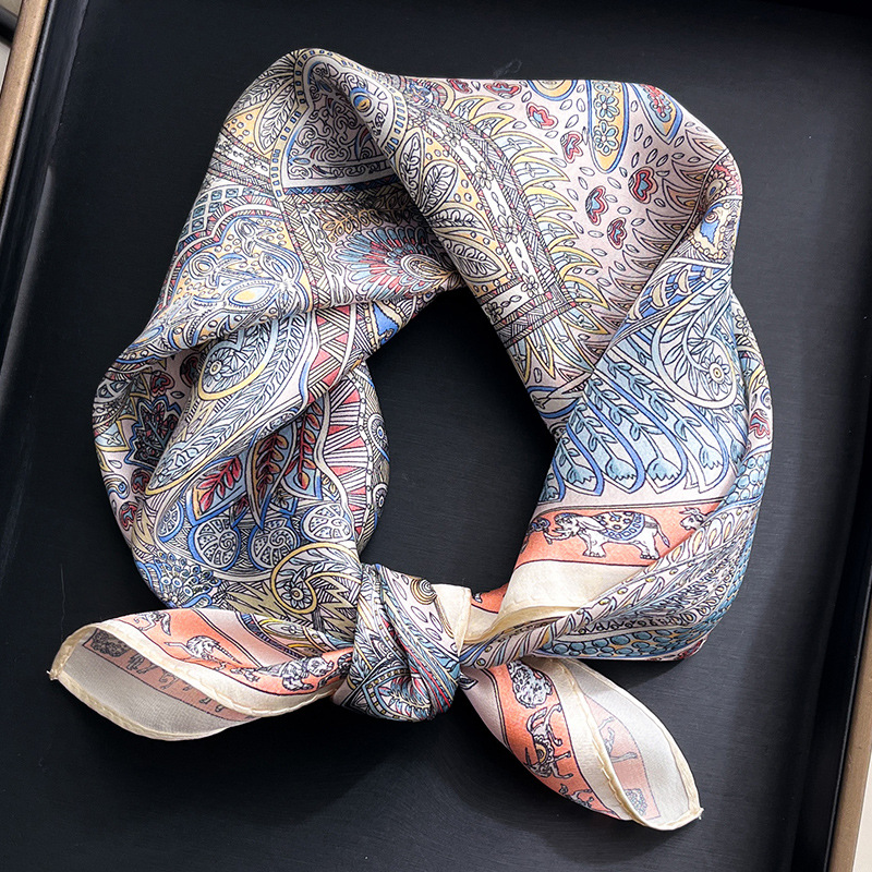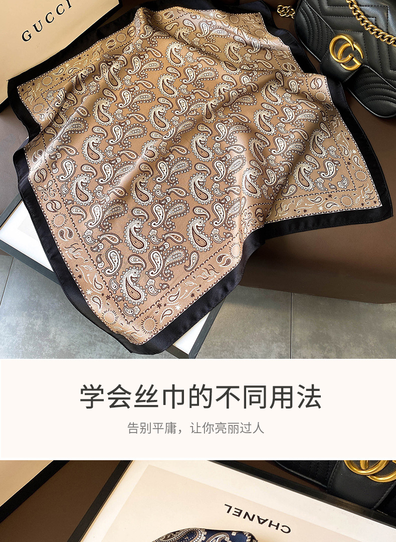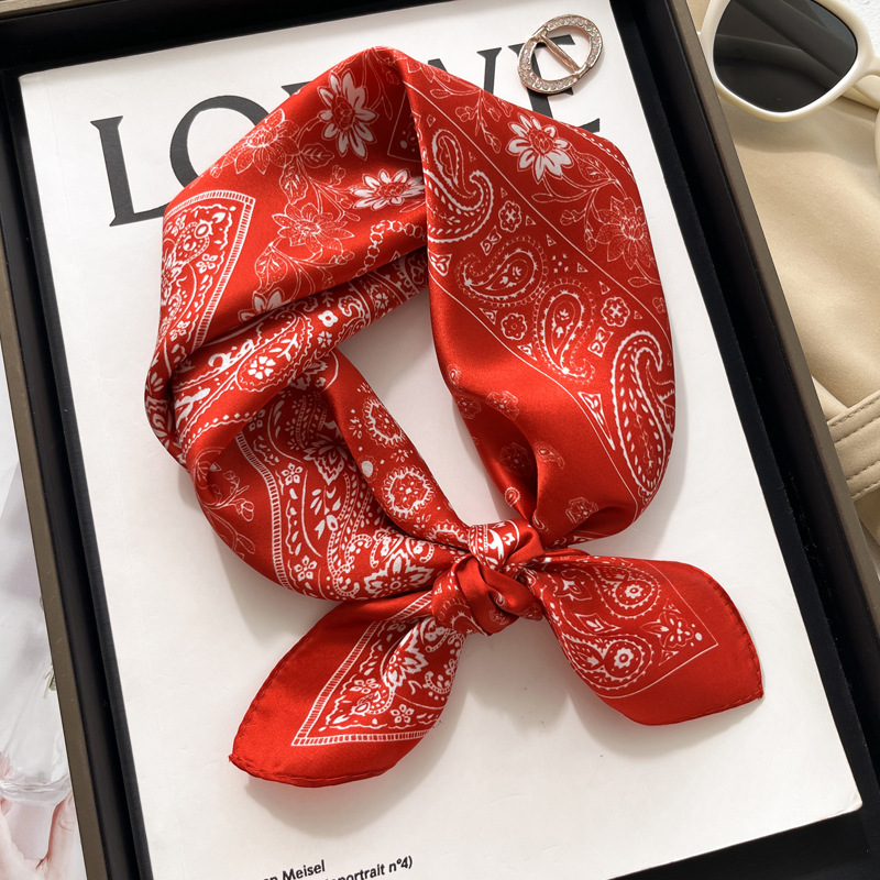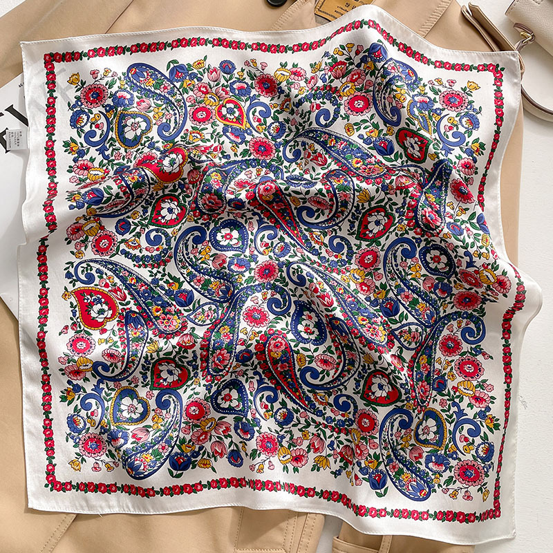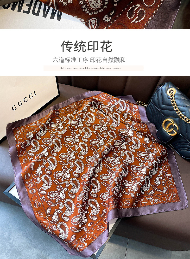 [도매] 봄과 가을 캐슈 꽃 실크 스카프 작은 사각 스카프 여성 뽕나무 실크 스카프 패션 브랜드 거리 힙합 남성