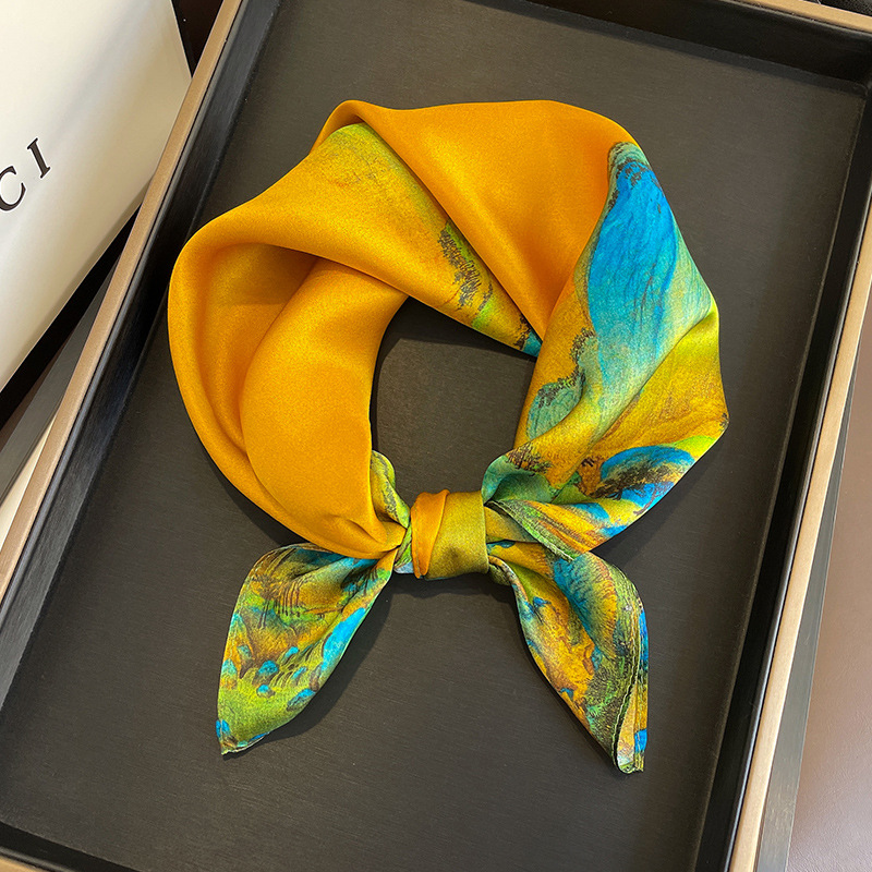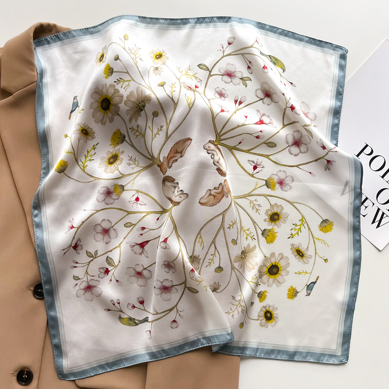 [도매] 뽕나무 실크 실크 스카프 작은 사각 스카프 여성의 세련된 패션 모든 일치 봄 가을 겨울 긴 얇은 스카프
