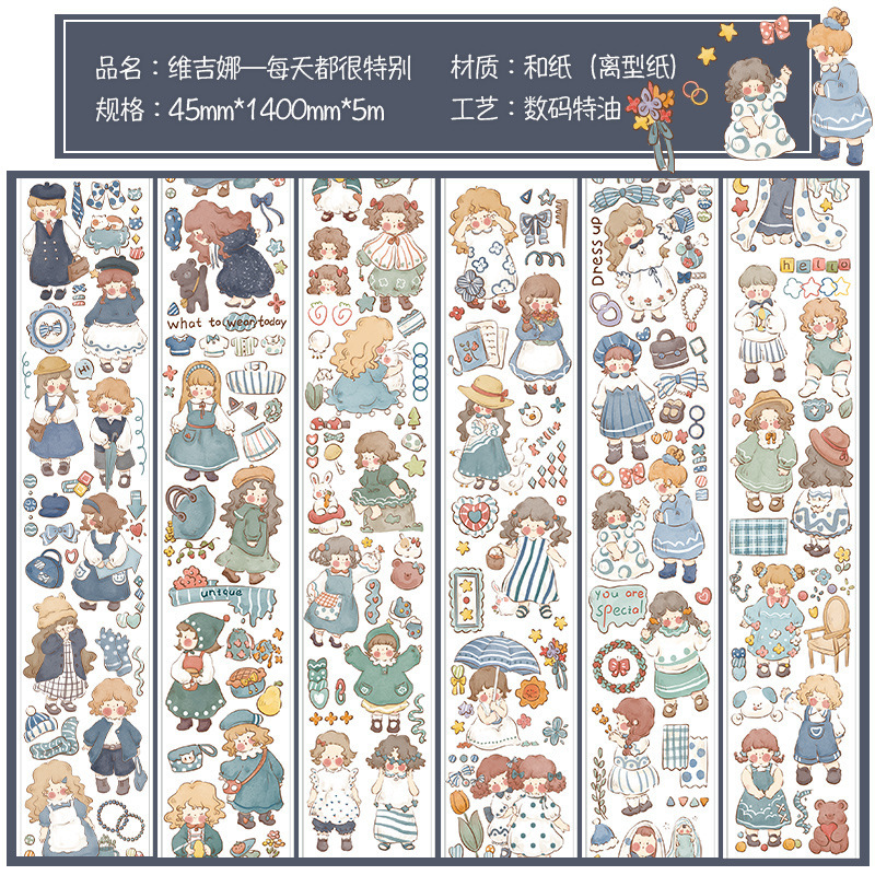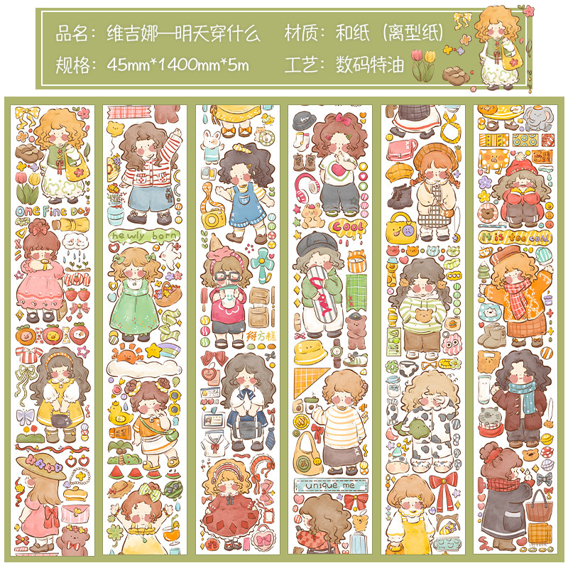 Xingmian Vigina 시리즈 특수 오일과 종이 테이프 귀여운 만화 캐릭터 손 계정 재료 DIY 장식 스티커
