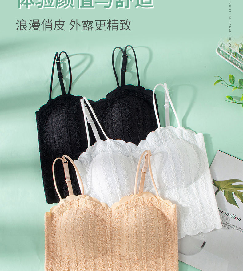 인터넷 연예인 폭발성 버블 레이스 캐미솔 조끼 여성용 내부베이스 탑 끈이없는 뷰티 스트랩 라텍스 가슴 패드 랩 가슴스토어 가기