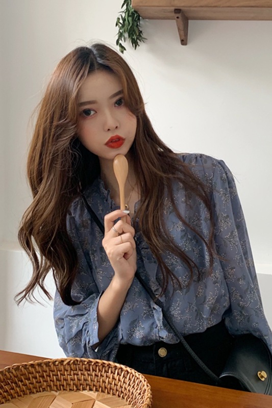 2024 새로운 스타일 인기있는 한국 스타일 느슨한 쉬폰 꽃 긴 소매 셔츠 여성의 여름 얇은 서양식 선 스크린 탑 옷스토어 가기