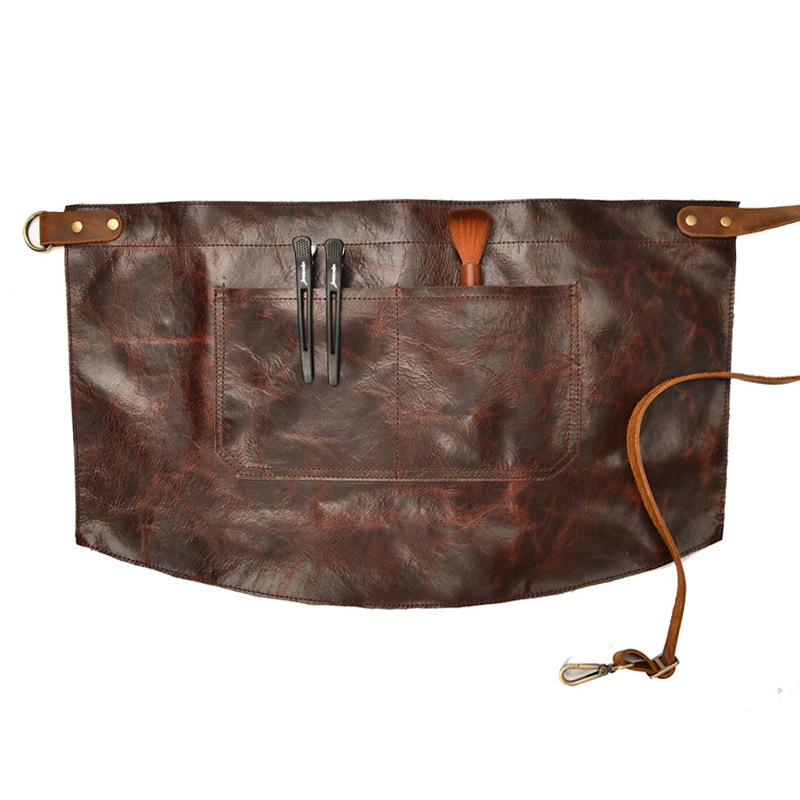 전체 소가죽 탑 가죽 레트로 방수 및 얼룩 방지 이발사 반 길이 소가죽 앞치마