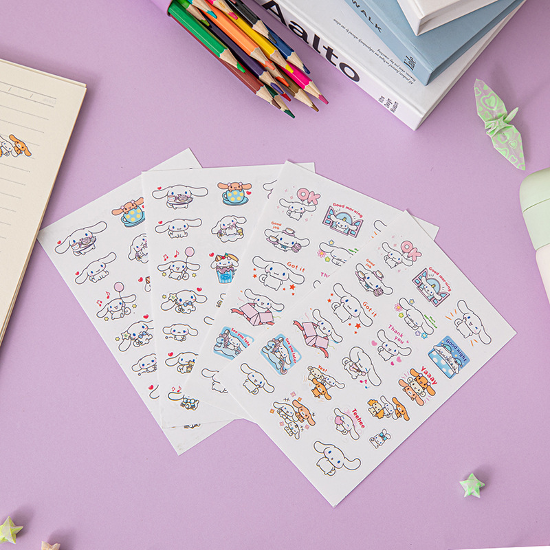 재고 옥 구이 개 스티커 PVC 창조적 인 방수 DIY 만화 스티커 산리오 큰 귀 개 손 계정 스티커 도매