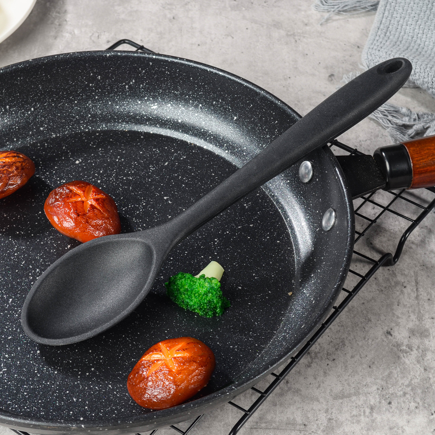 새로운 실리콘 냄비 스푼 통합 프라이팬 소쿠리 요리 스푼 다기능 주방 용품 주방 가제트스토어 가기