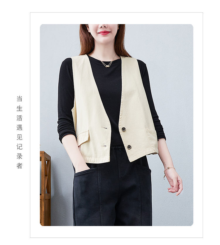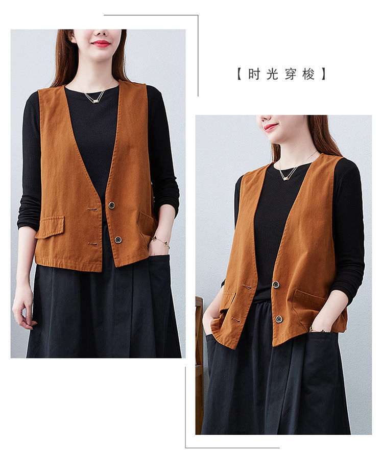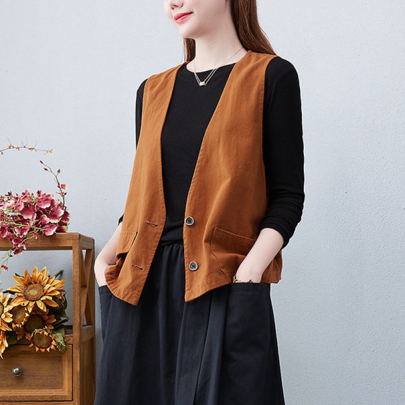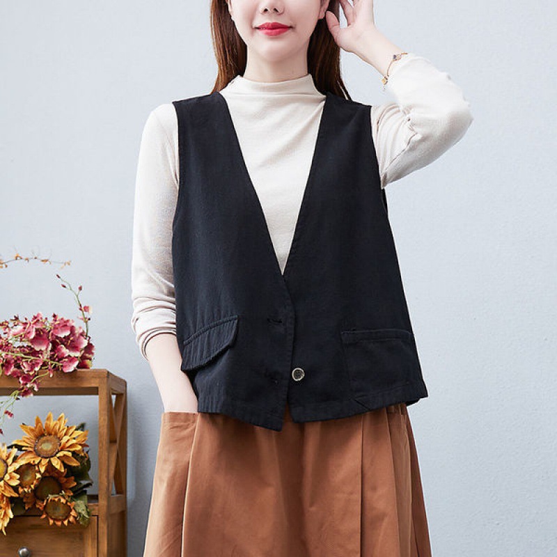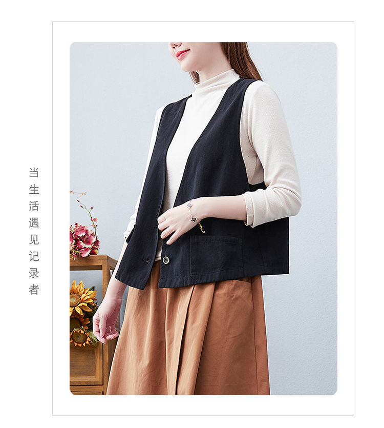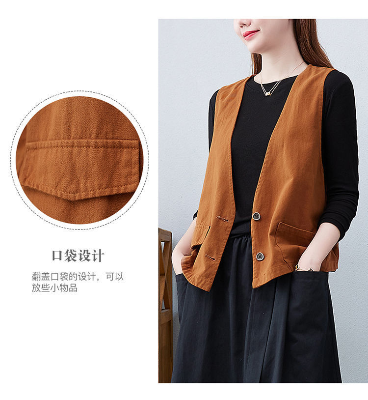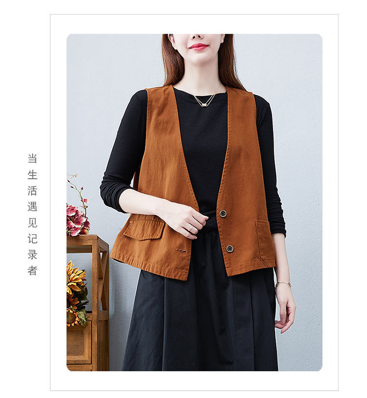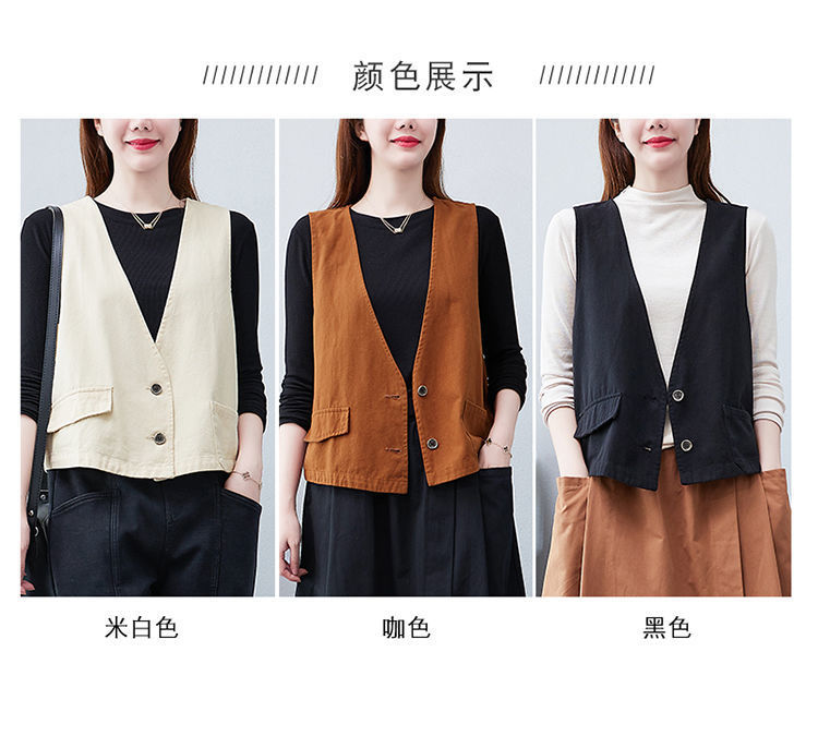 조끼 여성 봄과 가을 새로운 여성 플러스 사이즈 솔리드 컬러 코튼 통통녀 조끼 패션 레트로 웨이스트 코트 조끼 여성 자켓스토어 가기