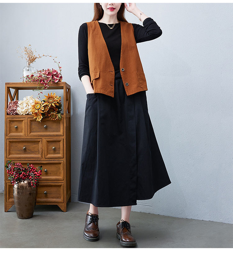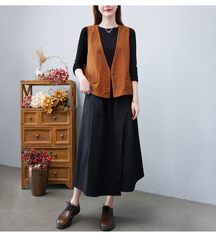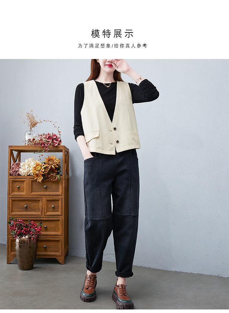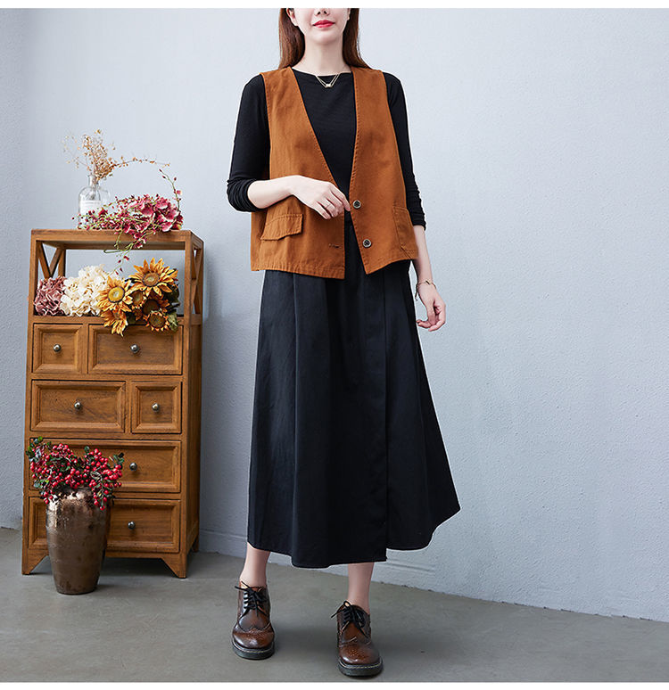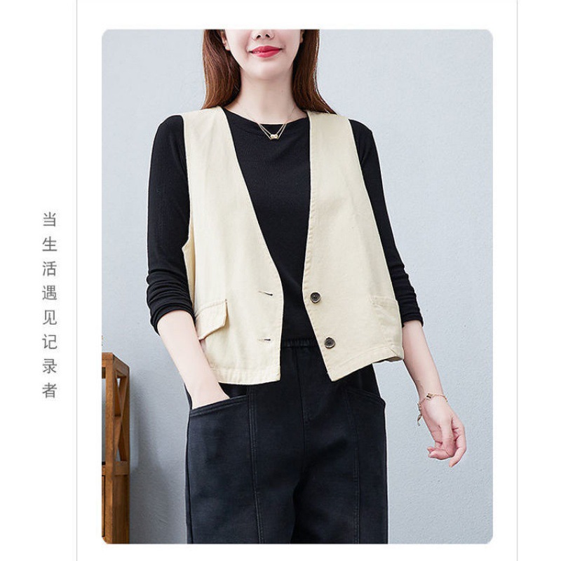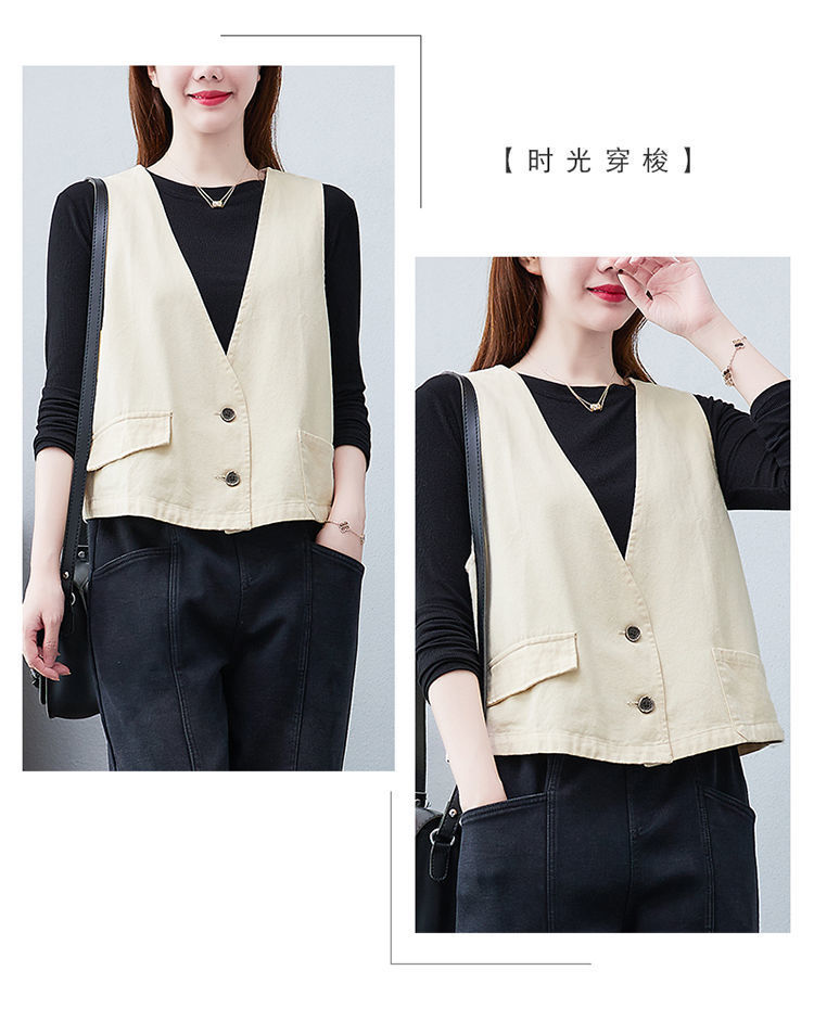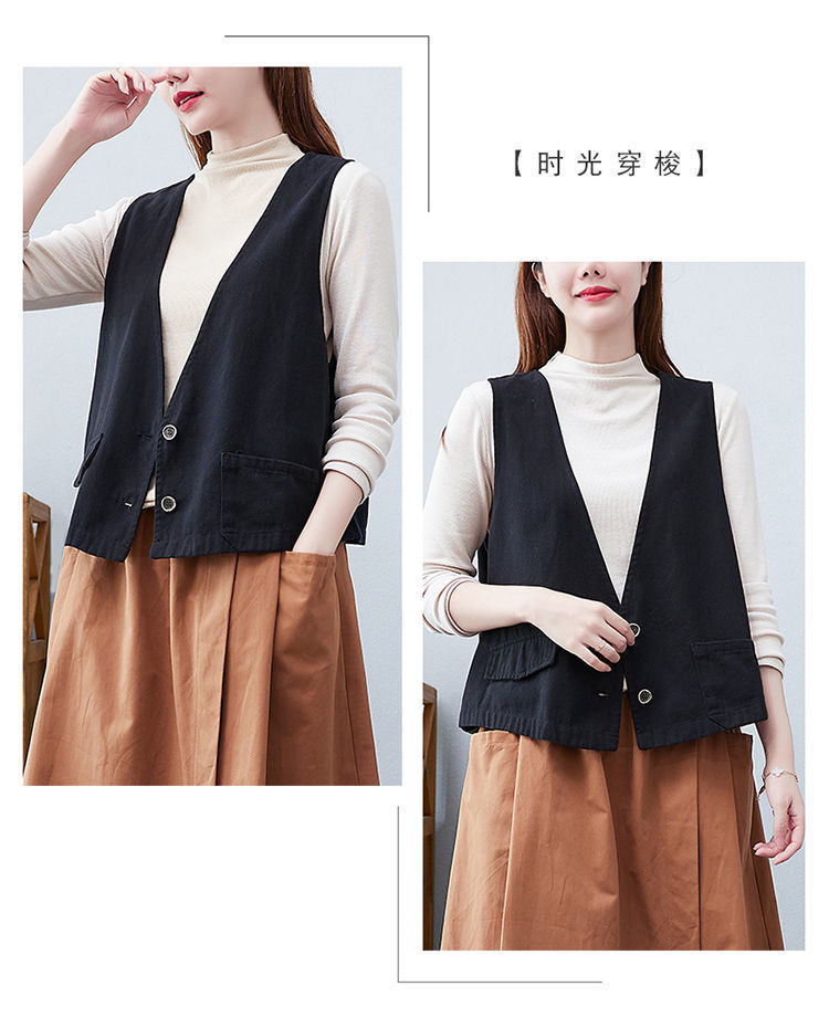 조끼 여성 봄과 가을 새로운 여성 플러스 사이즈 솔리드 컬러 코튼 통통녀 조끼 패션 레트로 웨이스트 코트 조끼 여성 자켓스토어 가기