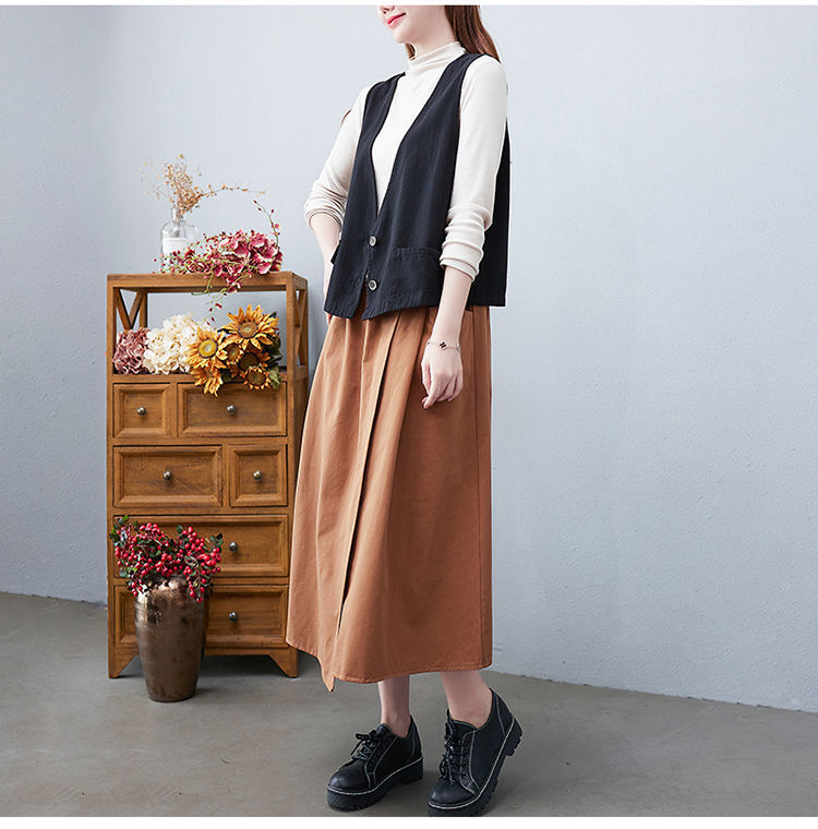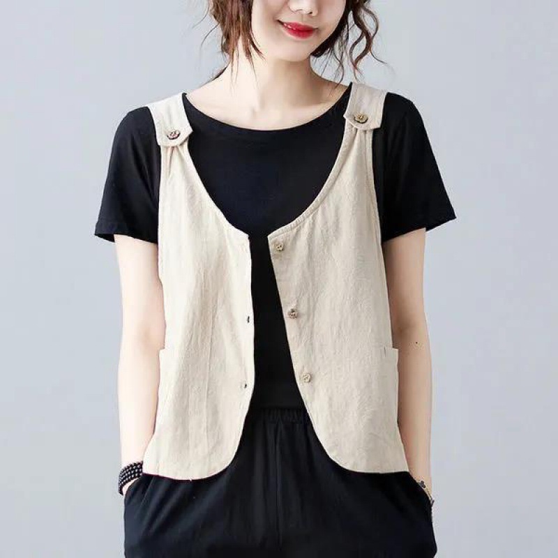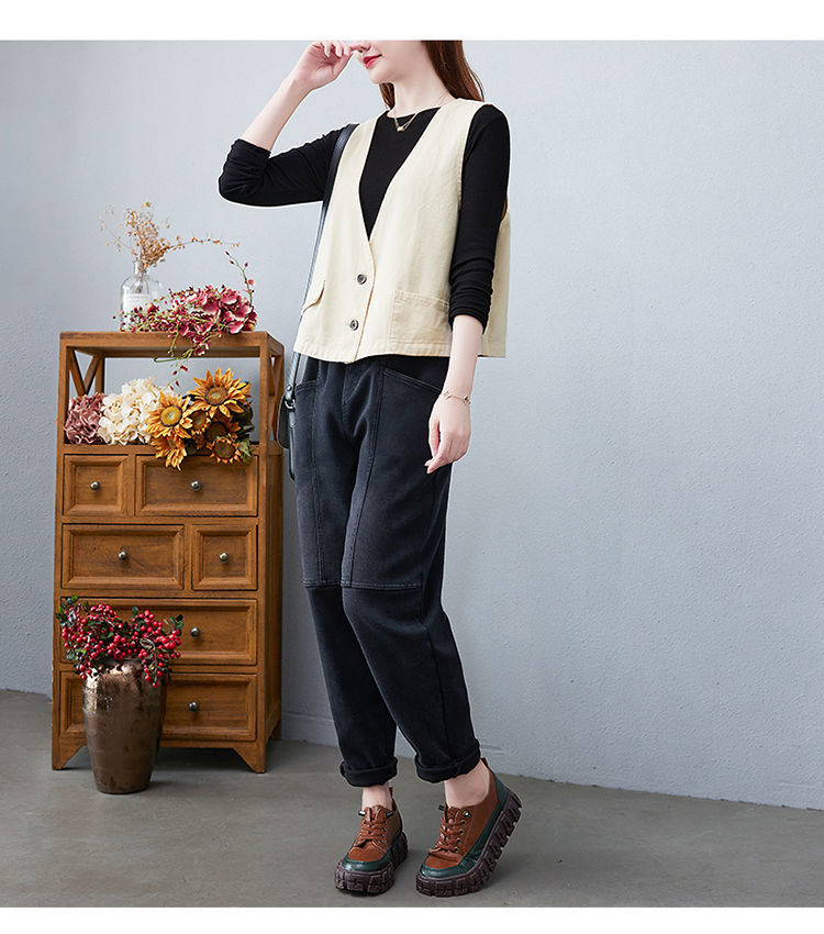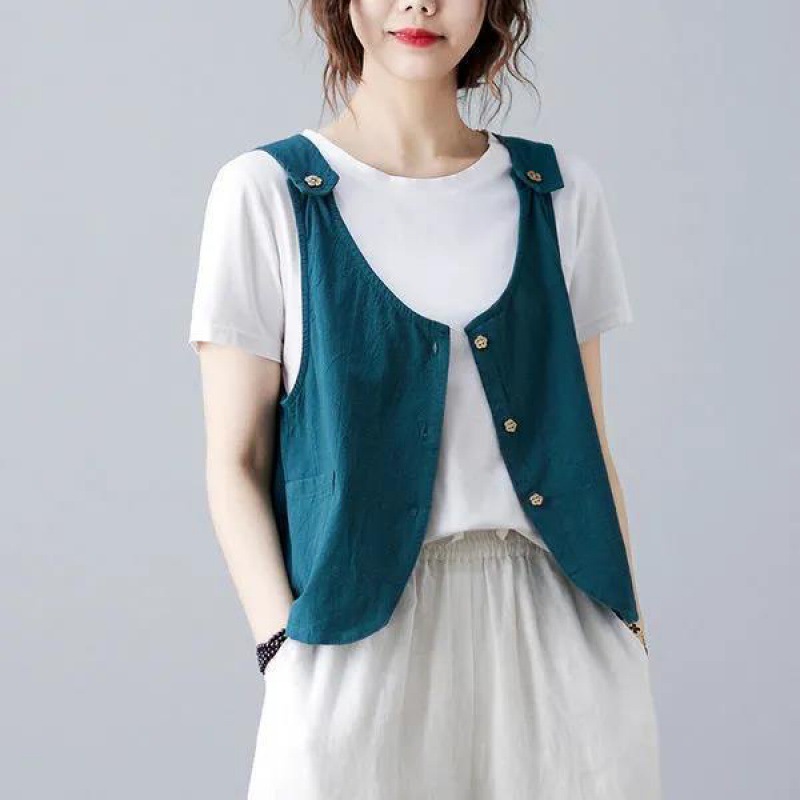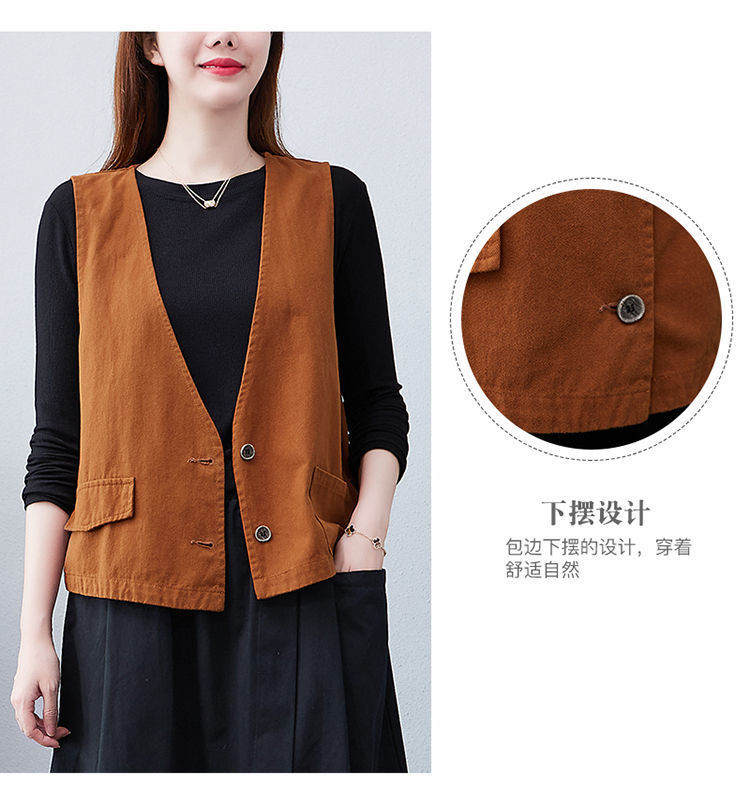 조끼 여성 봄과 가을 새로운 여성 플러스 사이즈 솔리드 컬러 코튼 통통녀 조끼 패션 레트로 웨이스트 코트 조끼 여성 자켓
