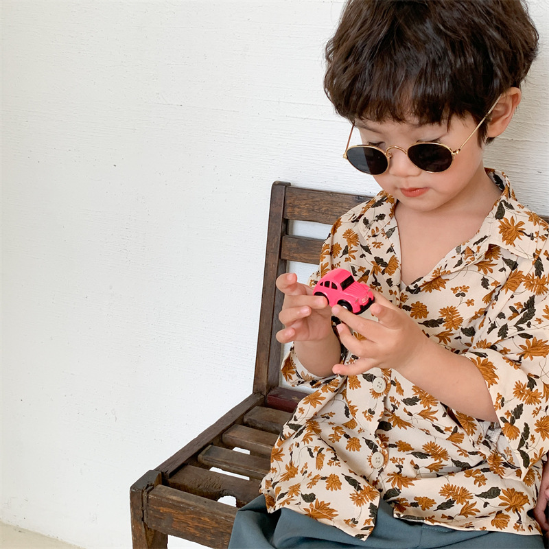 Jiaye 어린이 제품 2025 여름 새로운 어린이 쉬폰 꽃 반팔 셔츠 중소 어린이 숲 스타일 홍콩 스타일 셔츠