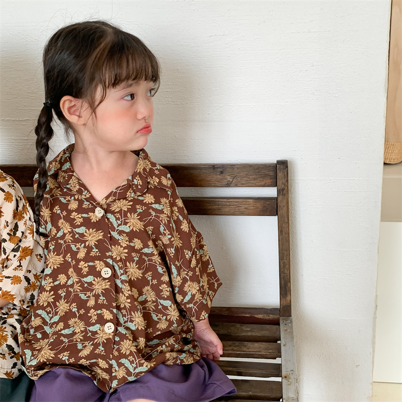 Jiaye 어린이 제품 2025 여름 새로운 어린이 쉬폰 꽃 반팔 셔츠 중소 어린이 숲 스타일 홍콩 스타일 셔츠스토어 가기