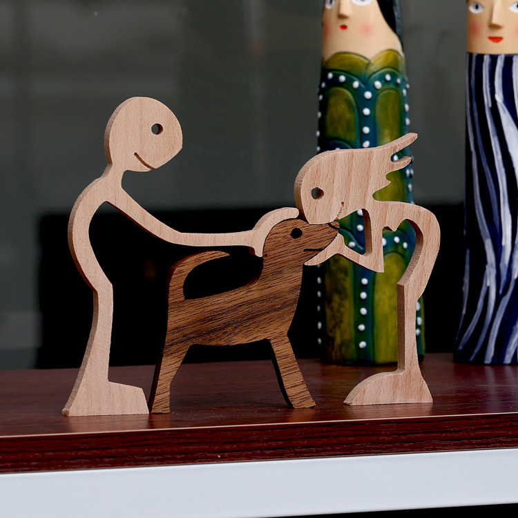 북유럽 크리에이티브 패션 장식 나무 공예 조각 애완 동물 기념품 홈 나무 남자 개 장식품스토어 가기