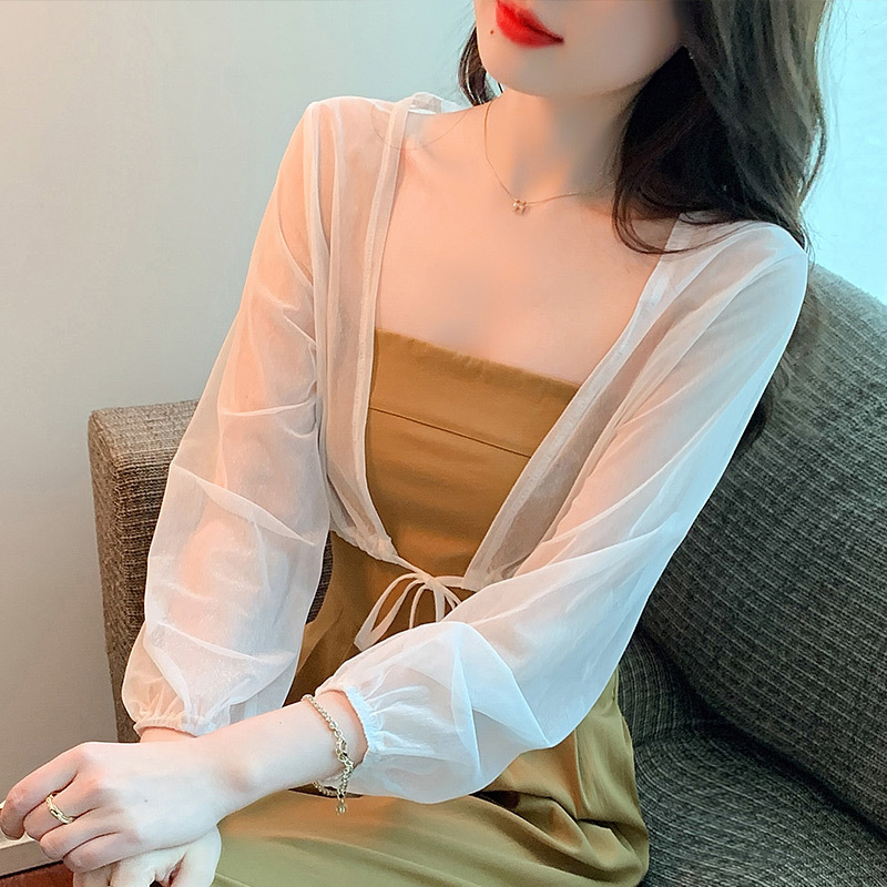 쉬폰 카디건 외부 착용 여성의 봄과 여름 요정 탑 짧은 서양 스타일 작은 셔츠 쉬폰 자외선 차단제 레이스 작은 숄