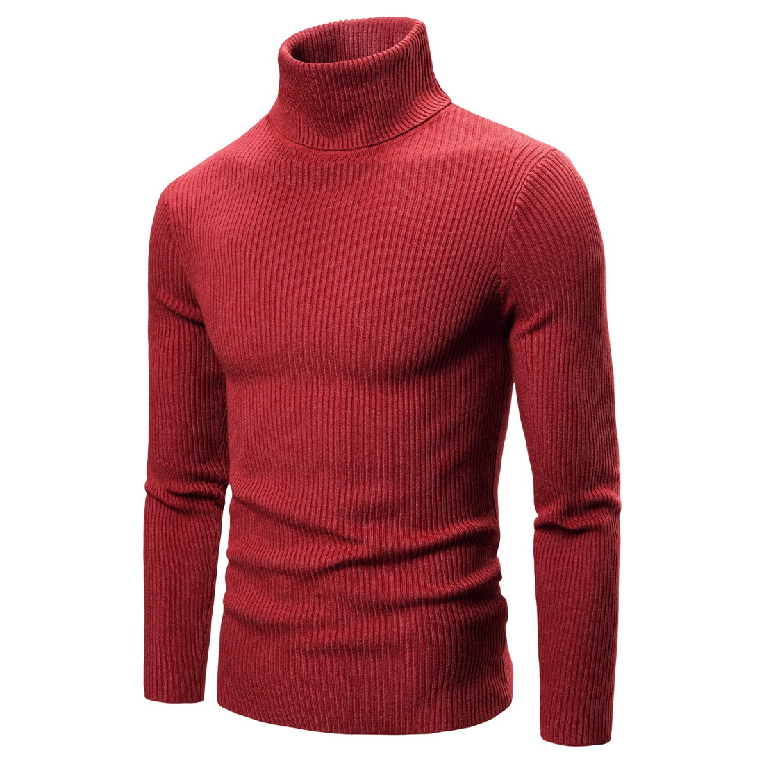 크로스 보더 가을과 겨울 남성 스웨터 긴팔 한국식 슬림핏 하이 칼라 스트레치 재고 청소년 남성 니트 베이스 셔츠