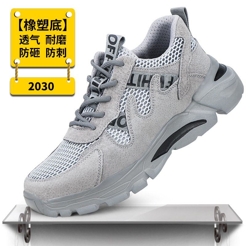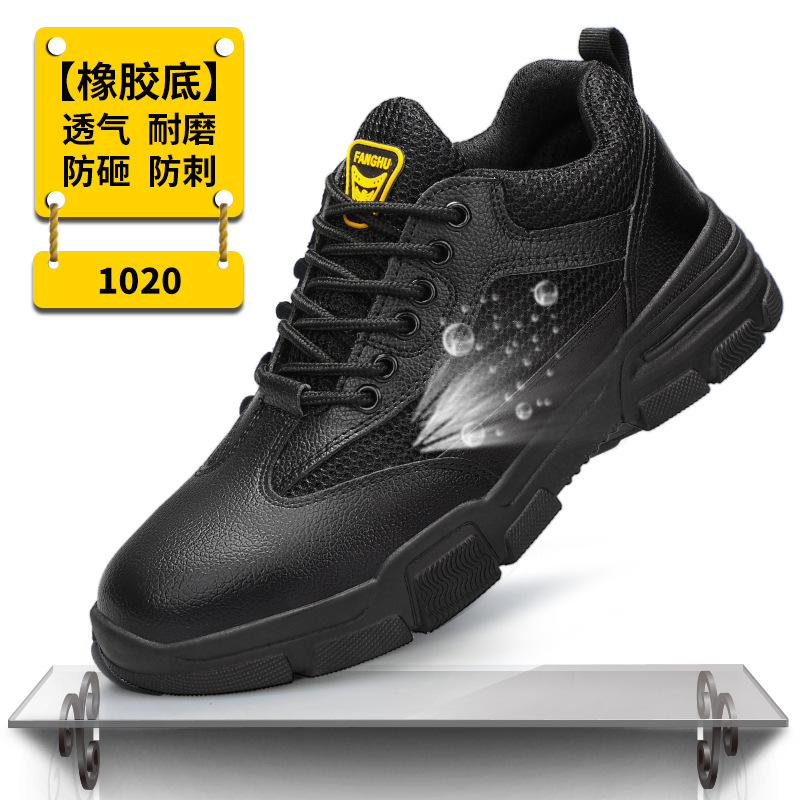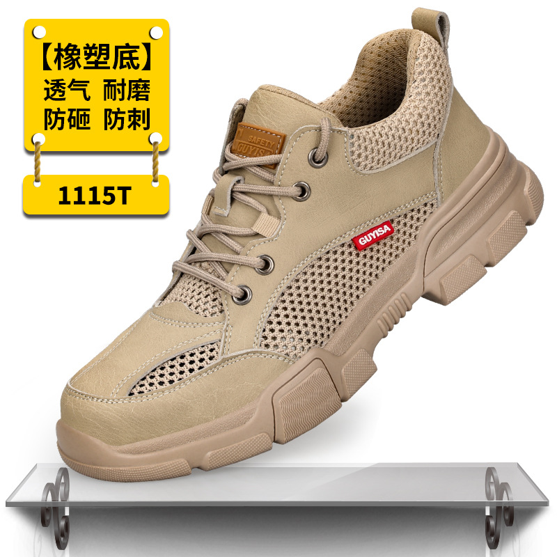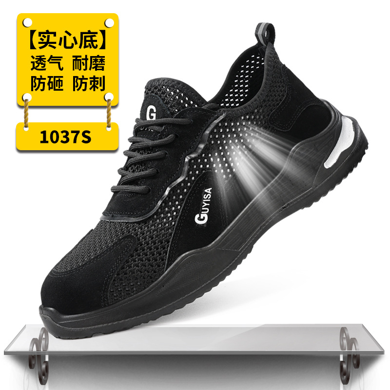 남성용 노동 보호 신발, 통기성, 충격 방지, 펑크 방지, 내마모성 강철 발가락 신발, 여름 경량 안전 건설 현장 작업 보호 신발