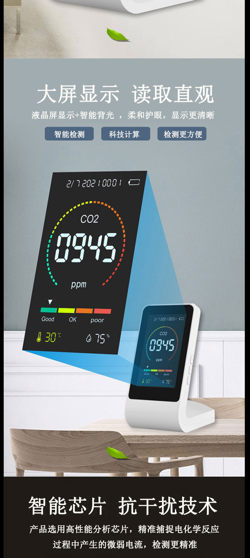 휴대용 이산화탄소 탐지기 공기질 온도 습도 적외선 쓰리인원 CO2 하프바디 인텔리전트 칩