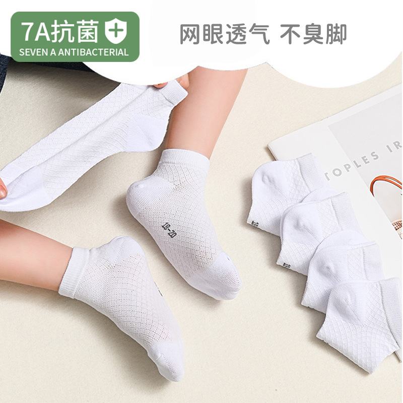Xuwei/Mesiyuan 아동용 얇은 여름 양말, 남학생과 여학생을 위한 흰색 학생용 중간 길이 양말, 면 소재 아동용 여름 양말