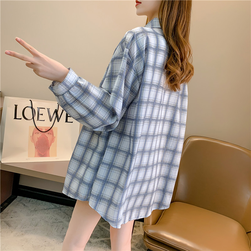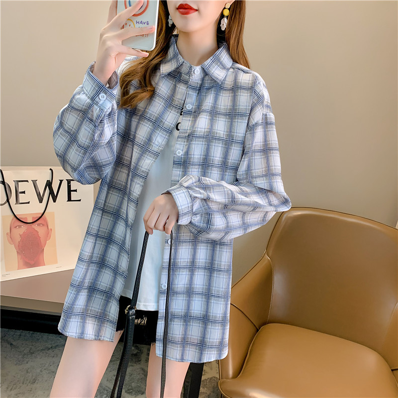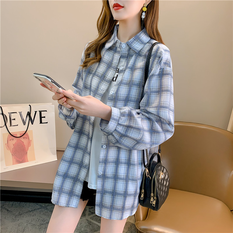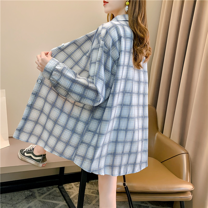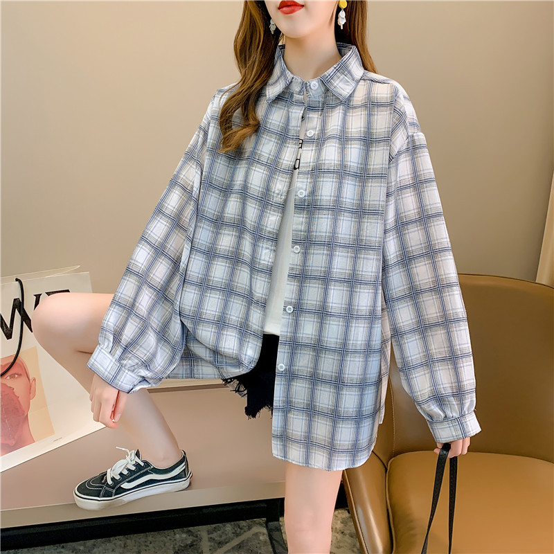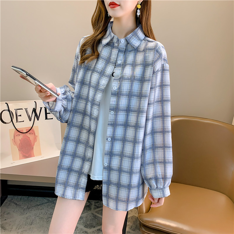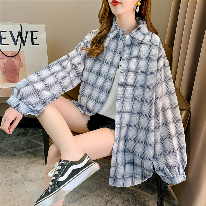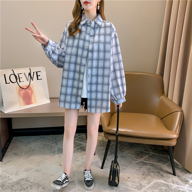 리얼 샷 재고 체크 무늬 셔츠 여자의 느슨한 한국 복고풍 홍콩 맛 조커 bf 긴 소매 선 스크린 재킷 그물 레드 도매스토어 가기