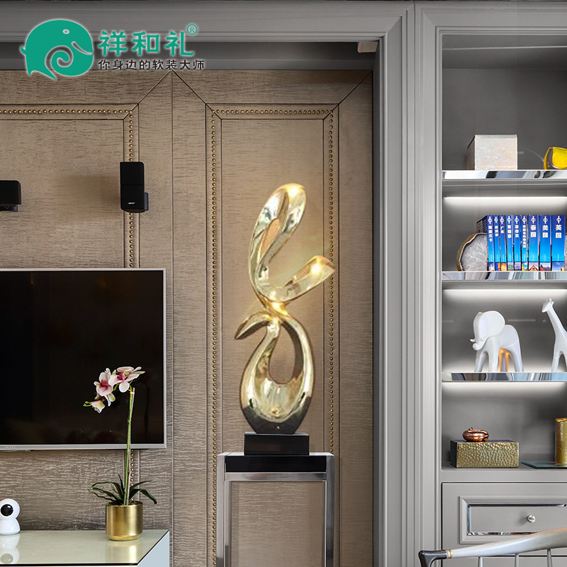 현대 모델 룸 조명 럭셔리 아트 장식 거실 입구 TV 캐비닛 바닥 조각 부드러운 장식 공예