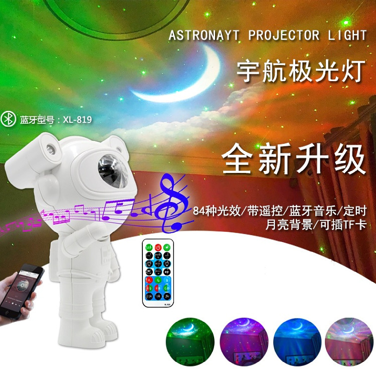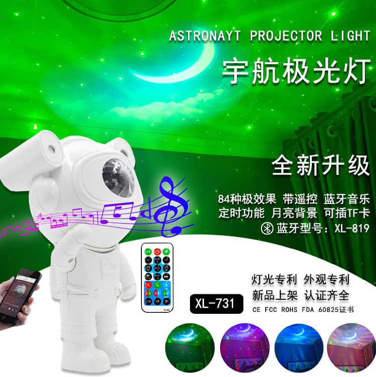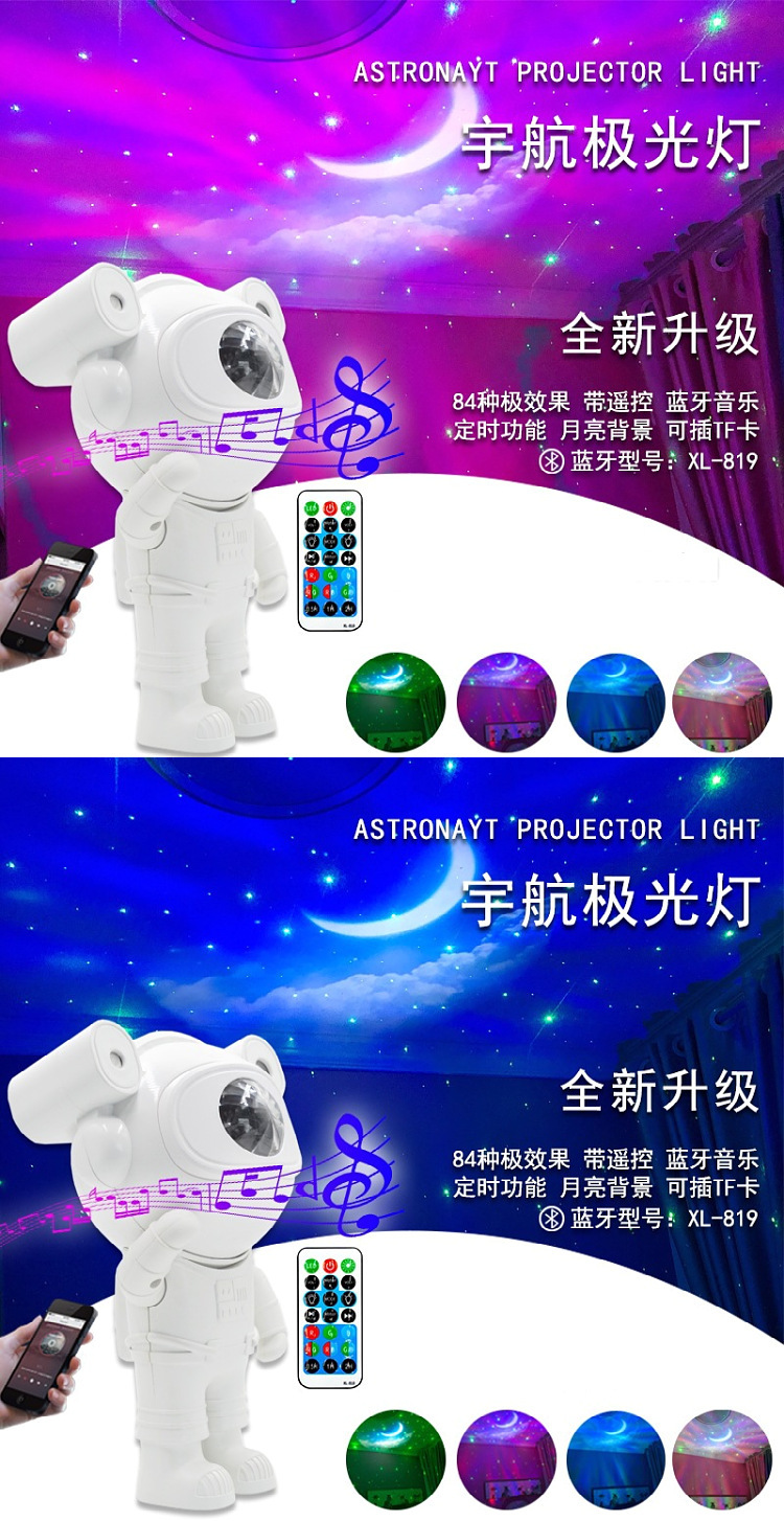 국경 간 우주 비행사 별 프로젝션 램프 우주 비행사 블루투스 음악 공간 북극광 프로젝터 분위기 야간 조명스토어 가기