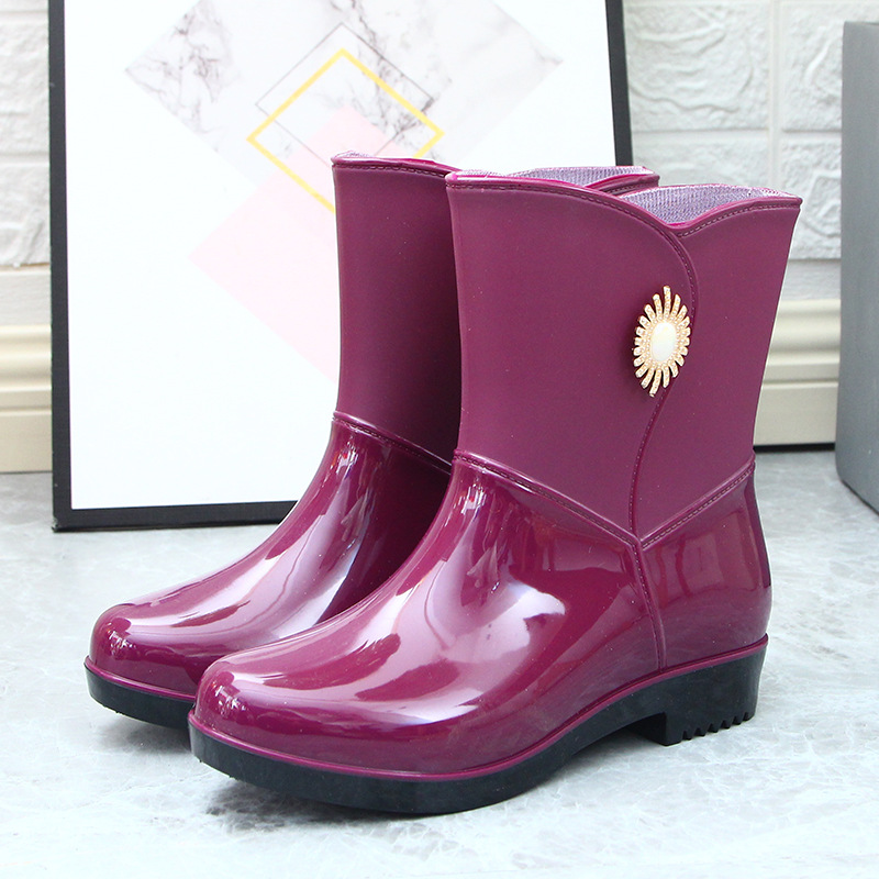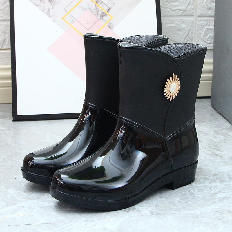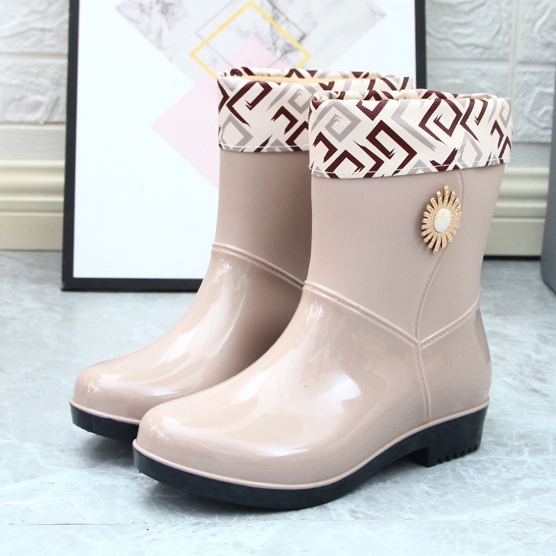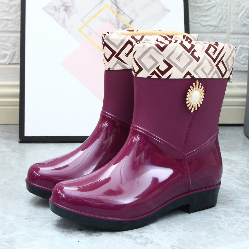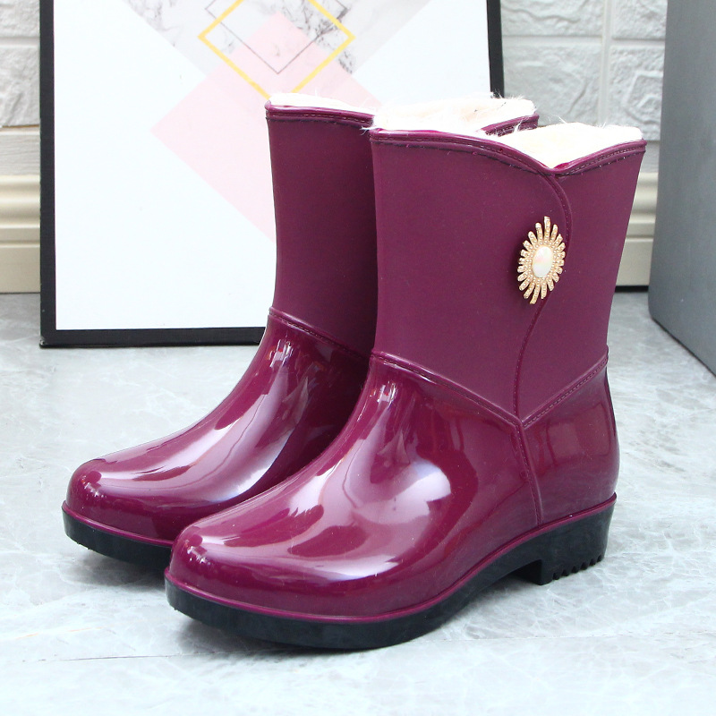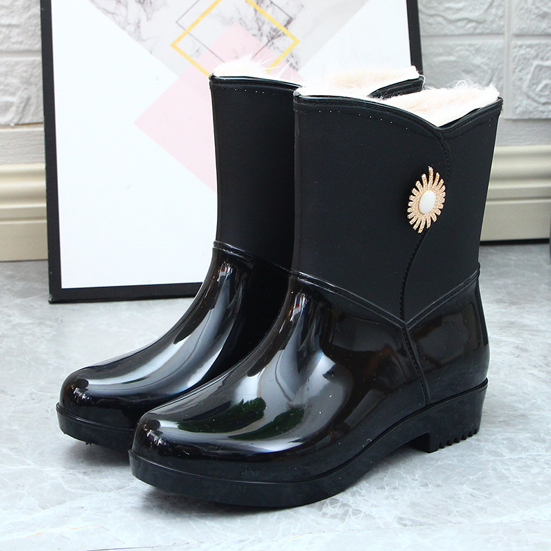 새로운 미드 배럴 기모 레인 부츠 방수 신발 고무 신발 오버슈즈 워터 부츠 여성 패션 성인 미끄럼 방지 하이 레인 부츠