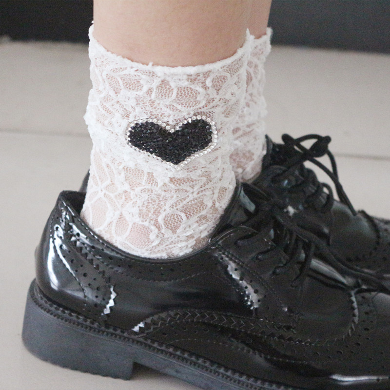 화이트 레이스 양말 여성의 여름 얇은 모조 다이아몬드 사랑 jk 귀여운 일본 메리 제인 더미 중반 종아리 길이 양말 여름스토어 가기