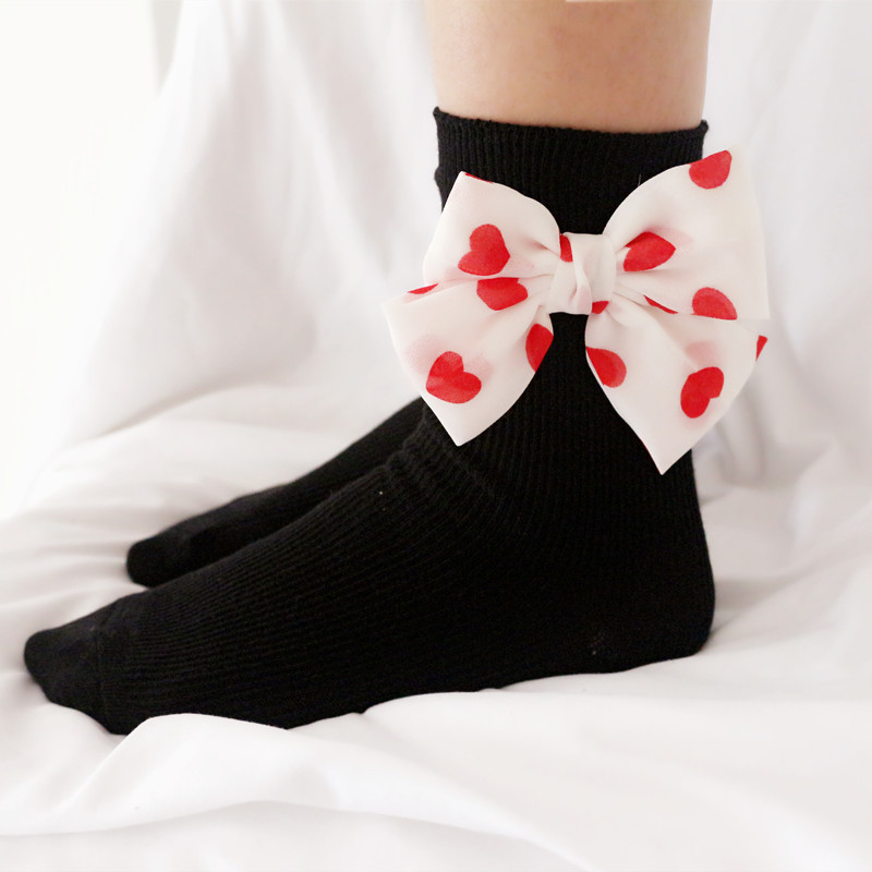 귀여운 중간 송아지 양말 큰 활 얇은 달콤한 짧은 흑백 여름 귀여운 통기성 양말 여성 로리타스토어 가기