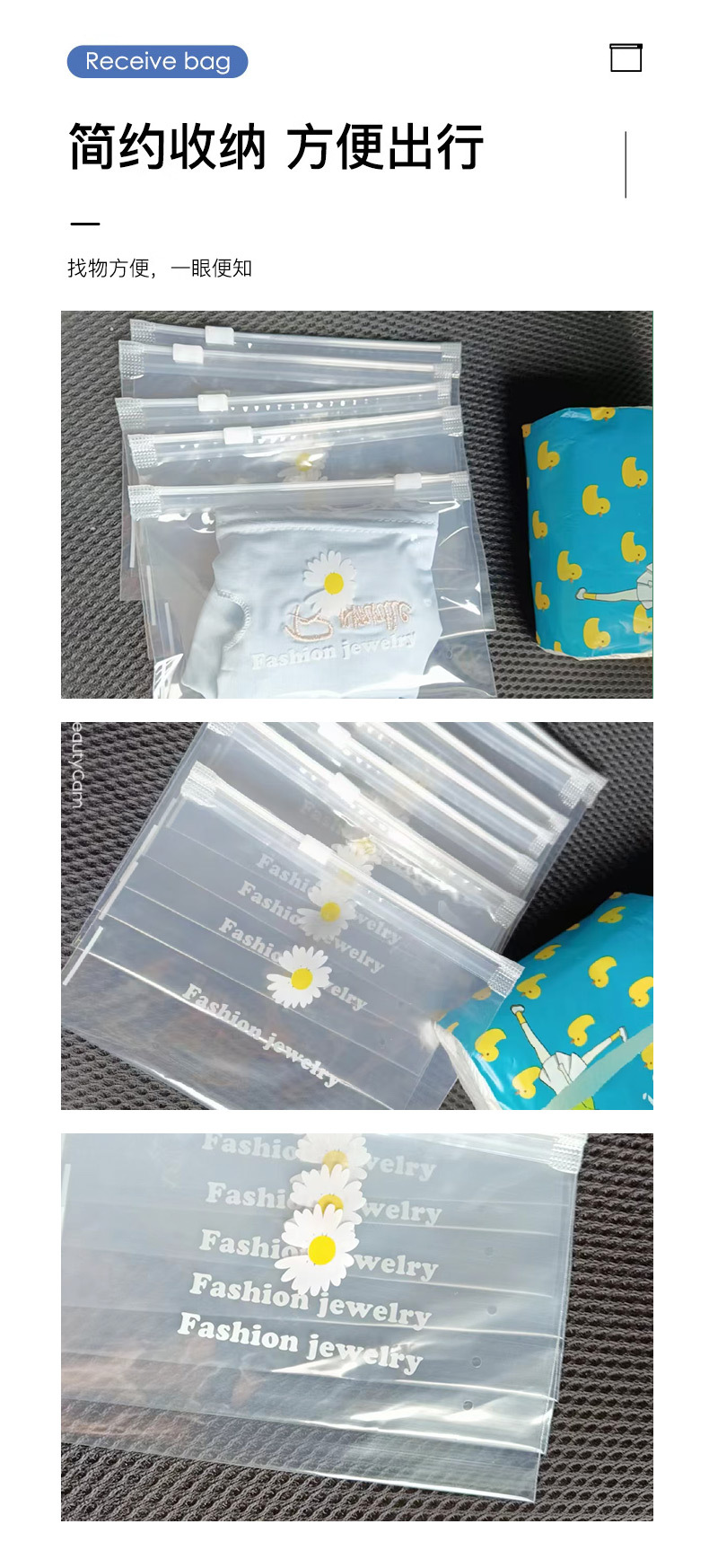 투명 재고 포장 백, 작은 국화 지퍼 백, 액세서리, 고무줄, 아이스 슬리브, 가정용 보관 포장 백, 작은 국화스토어 가기