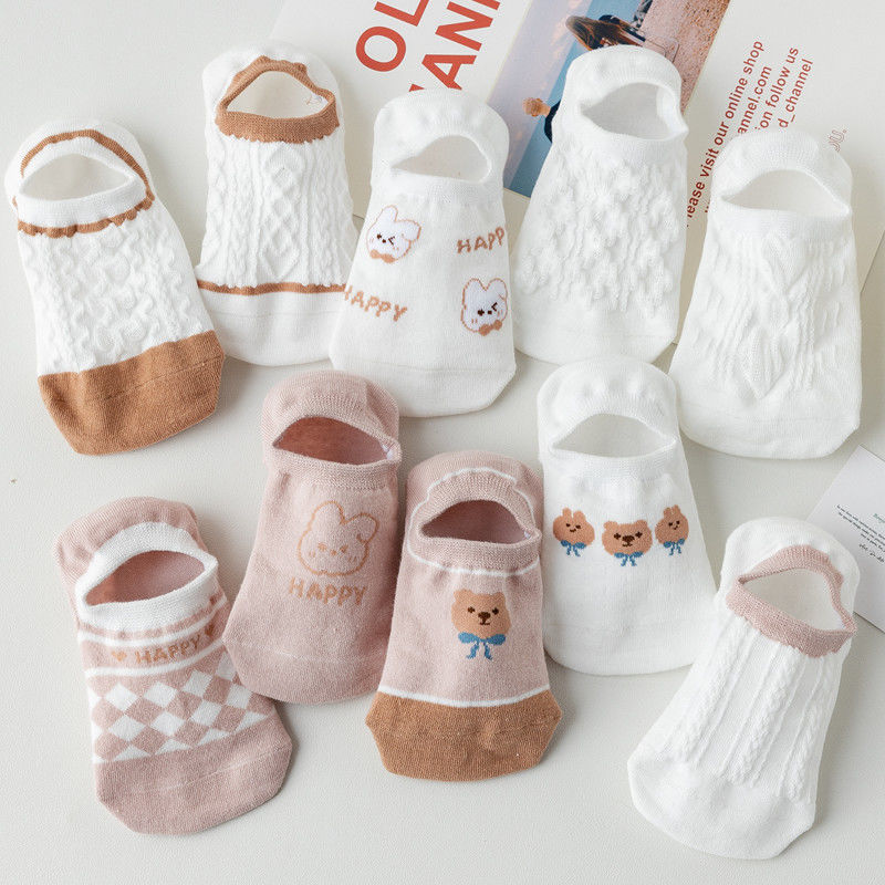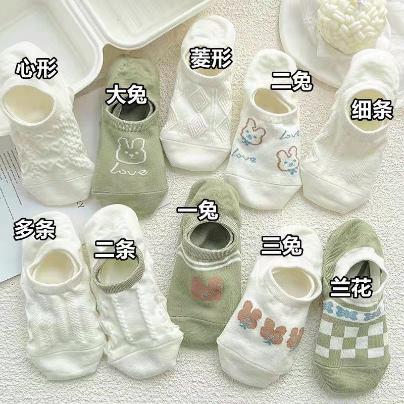 흰색 양말 새 보트 양말 토끼 머리 보이지 않는 양말 녹색 만화 동물 조수 실리콘 미끄럼 방지 머리카락 생성스토어 가기