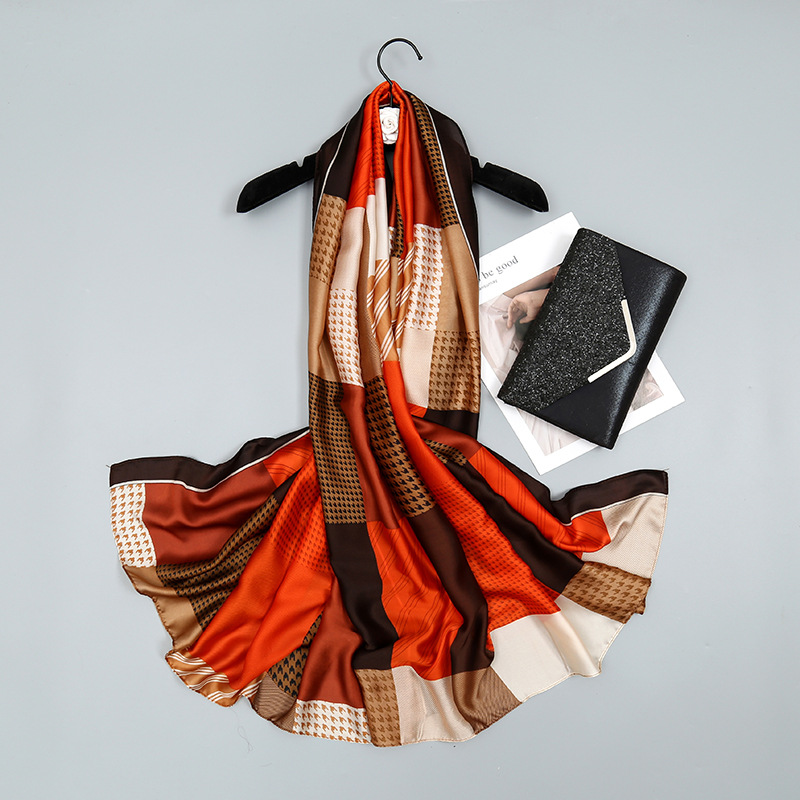 유행 간단한 모든 일치 Houndstooth 격자 무늬 기하학적 색상 매칭 새로운 실크 새틴 긴 숄 에스닉 우아한 여성 가방 머리 스카프