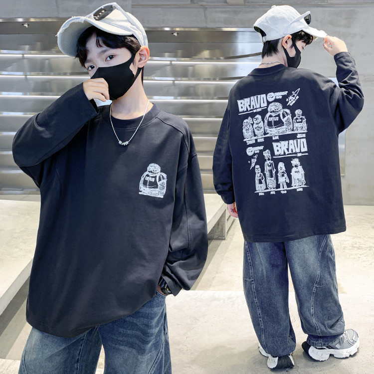 남자들의 가을 긴팔 티셔츠 2025 새로운 스타일 한국 캐주얼 루즈 탑 풀오버 베이스 셔츠 트렌디스토어 가기