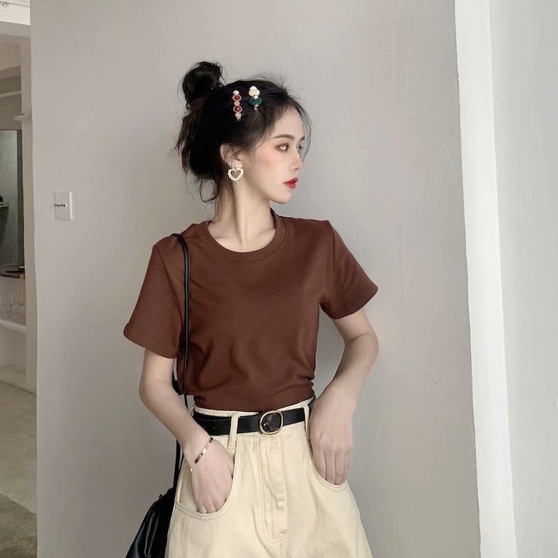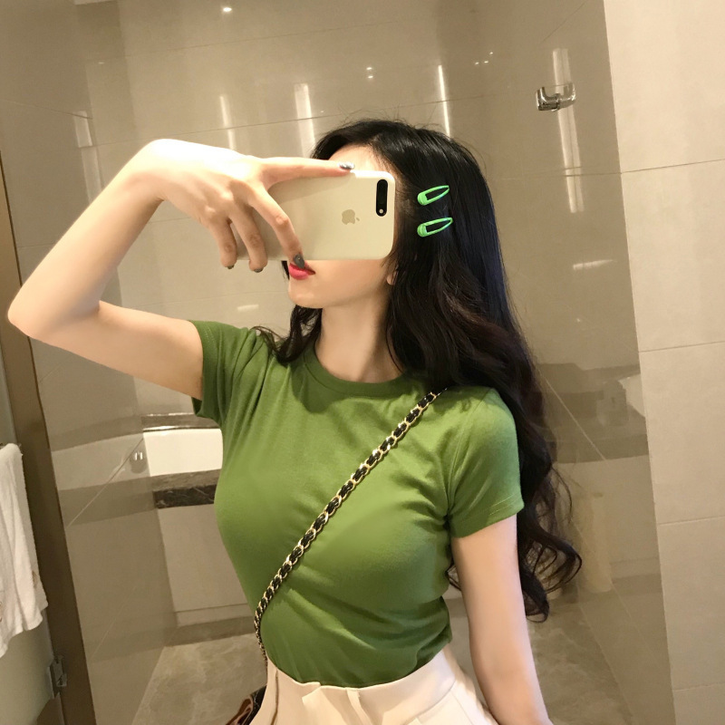 캔디 컬러 한국어 라운드 넥 탑 여성 2025 느슨한 모든 경기 Bottoming 셔츠 여름 새로운 짧은 소매 티셔츠 여성 도매