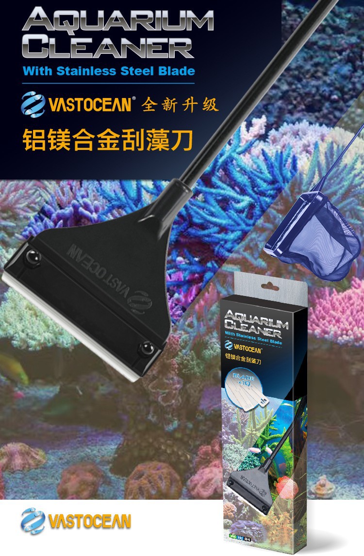 VASTOCEAN 마그네슘 합금 어항 스크레이퍼 조류 제거 칼 조류 스크레이퍼 청소 도구 녹 방지 선물 블레이드 10 개스토어 가기