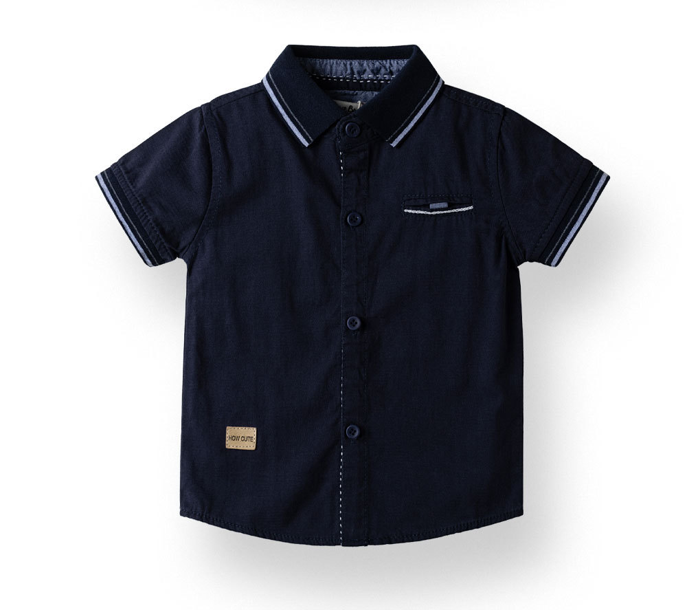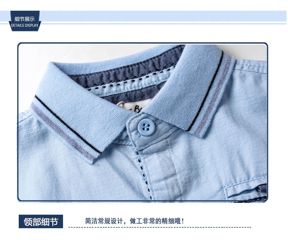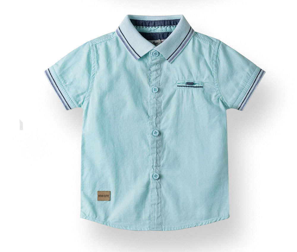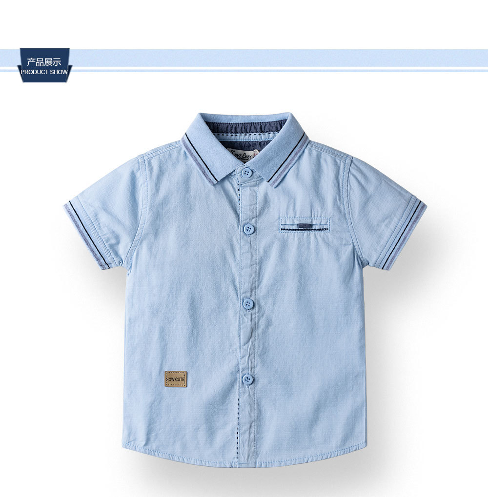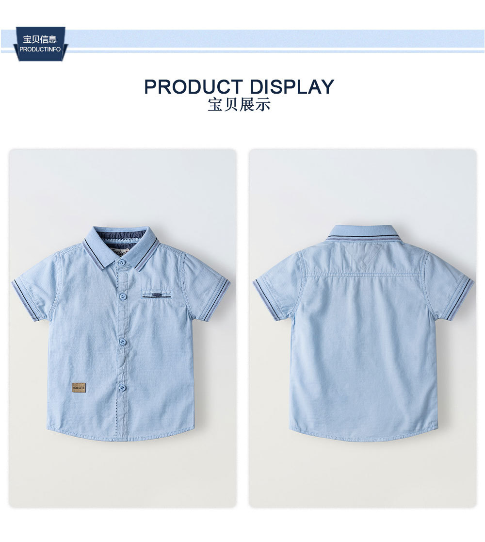 소년 여름 셔츠 2024 여름 새로운 솔리드 컬러 늑골이있는 옷깃 탑 간단한 캐주얼 반팔 아동 셔츠스토어 가기