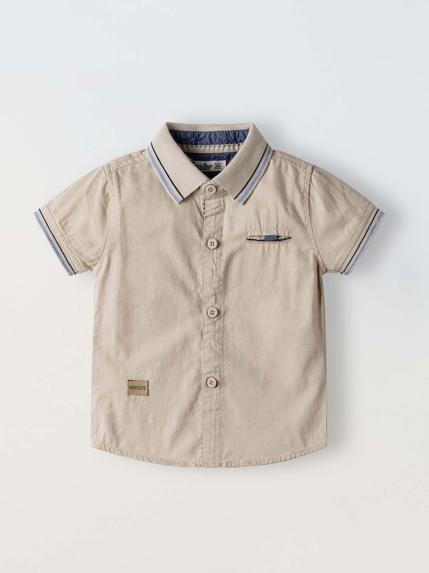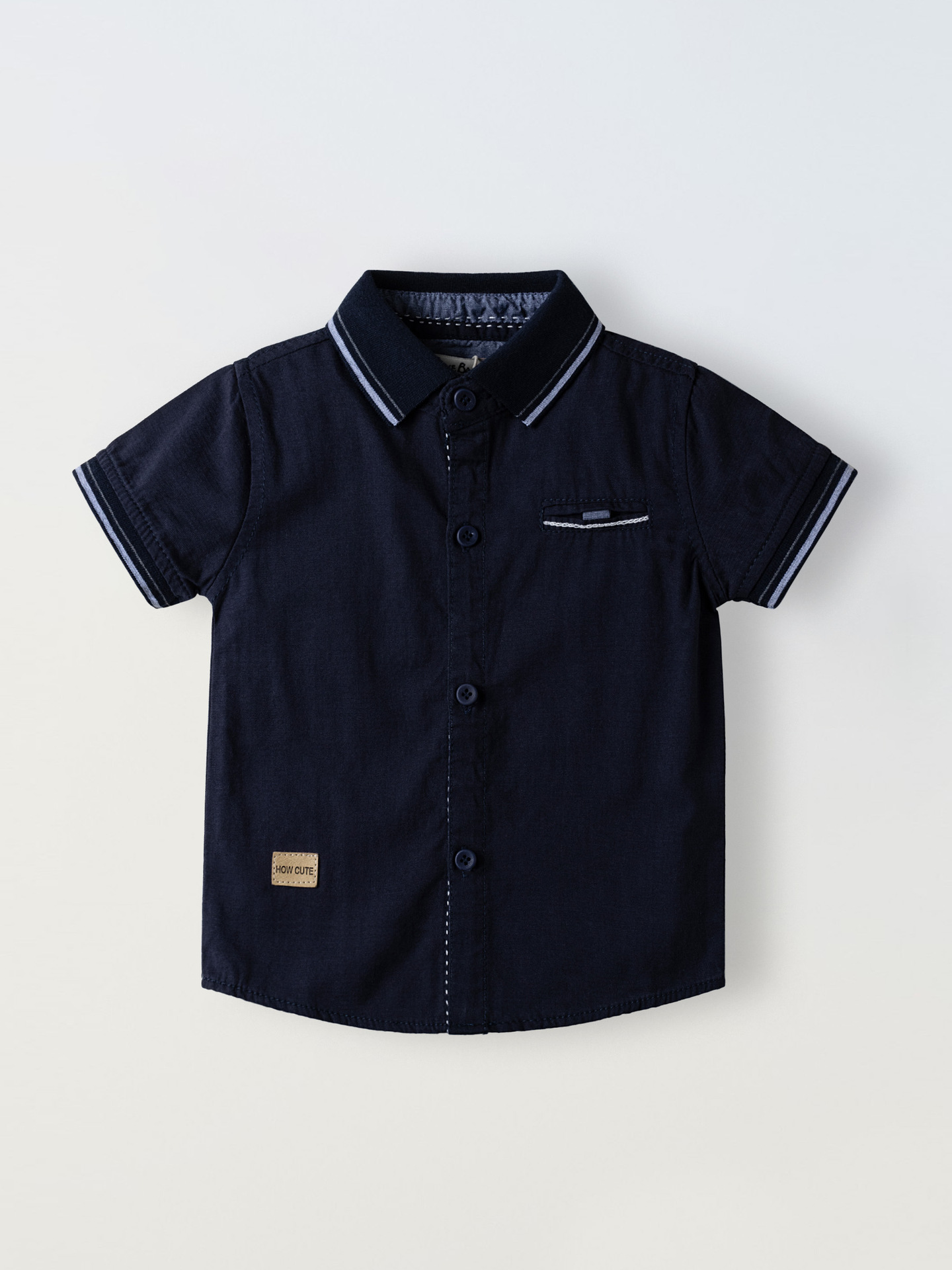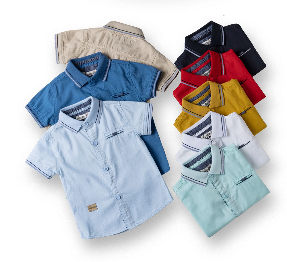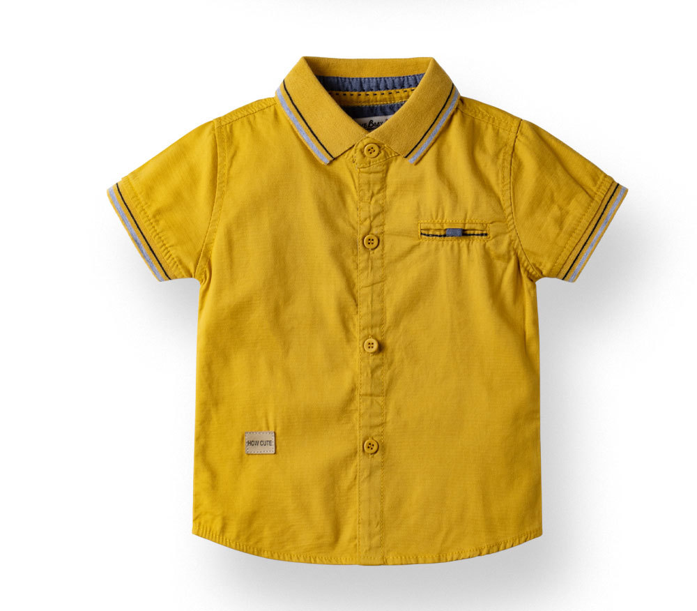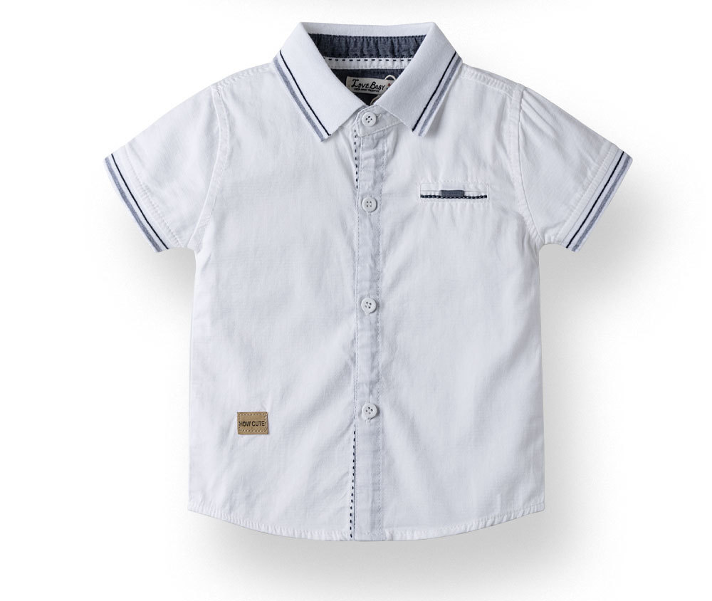소년 여름 셔츠 2024 여름 새로운 솔리드 컬러 늑골이있는 옷깃 탑 간단한 캐주얼 반팔 아동 셔츠스토어 가기
