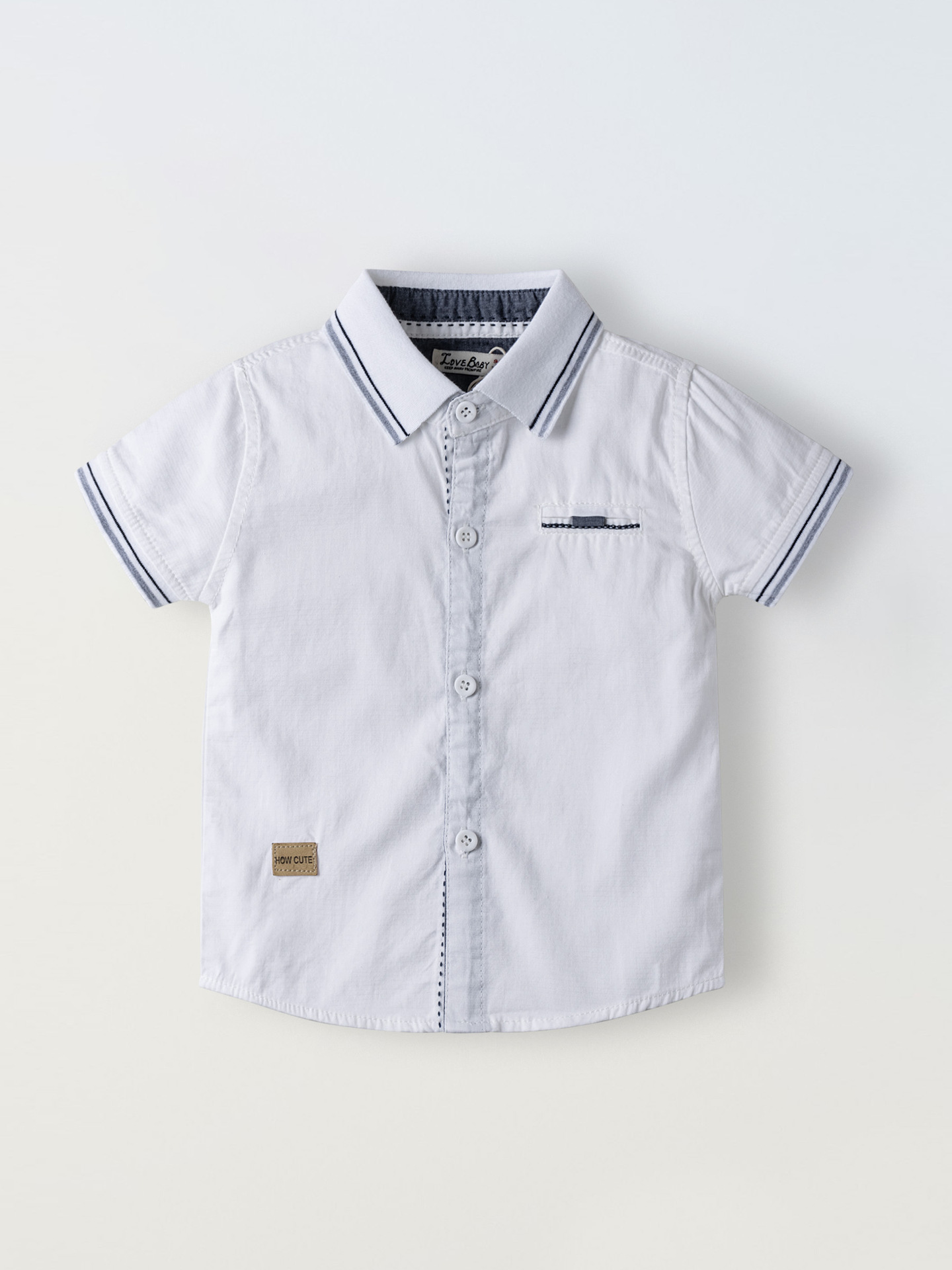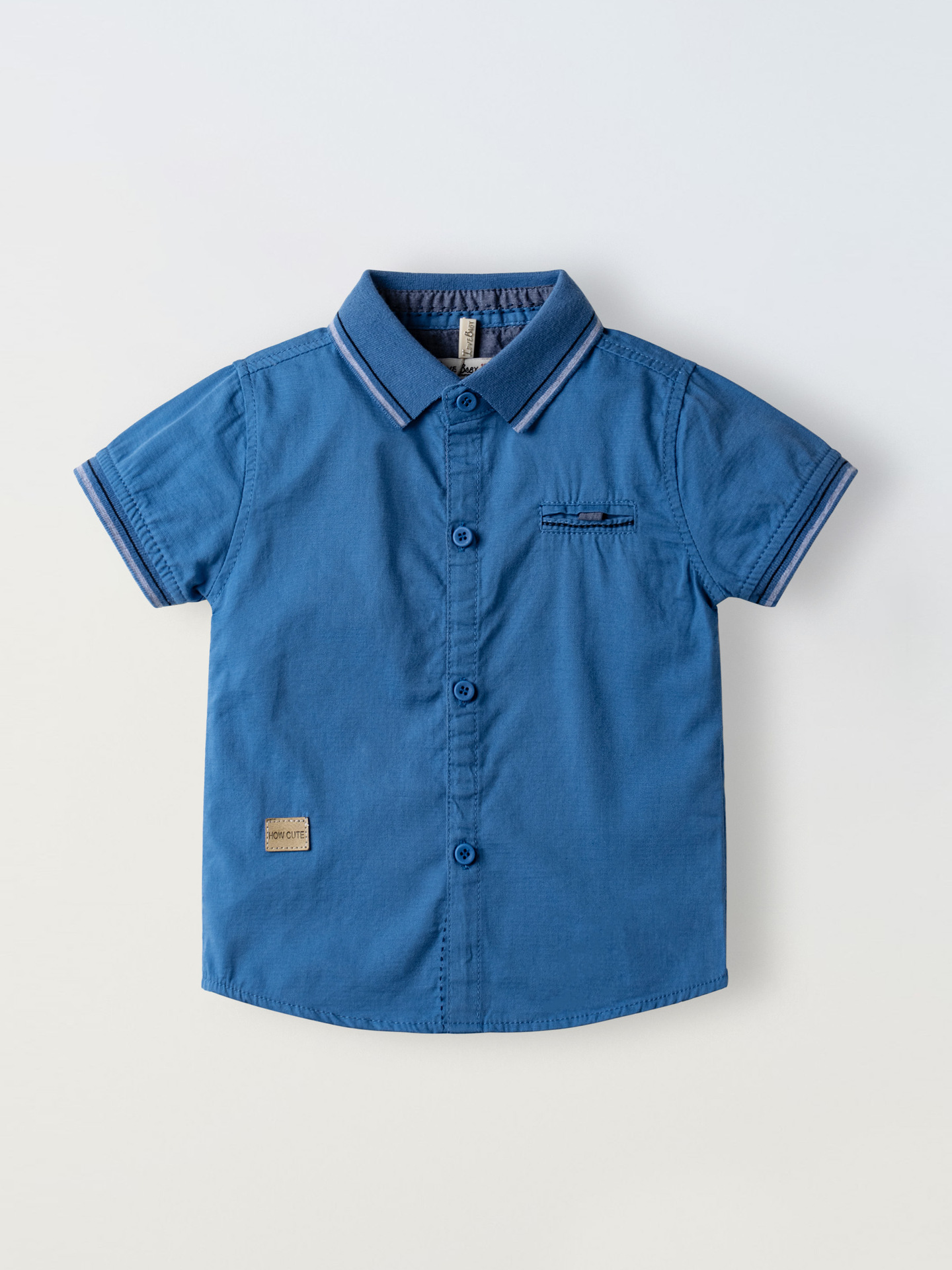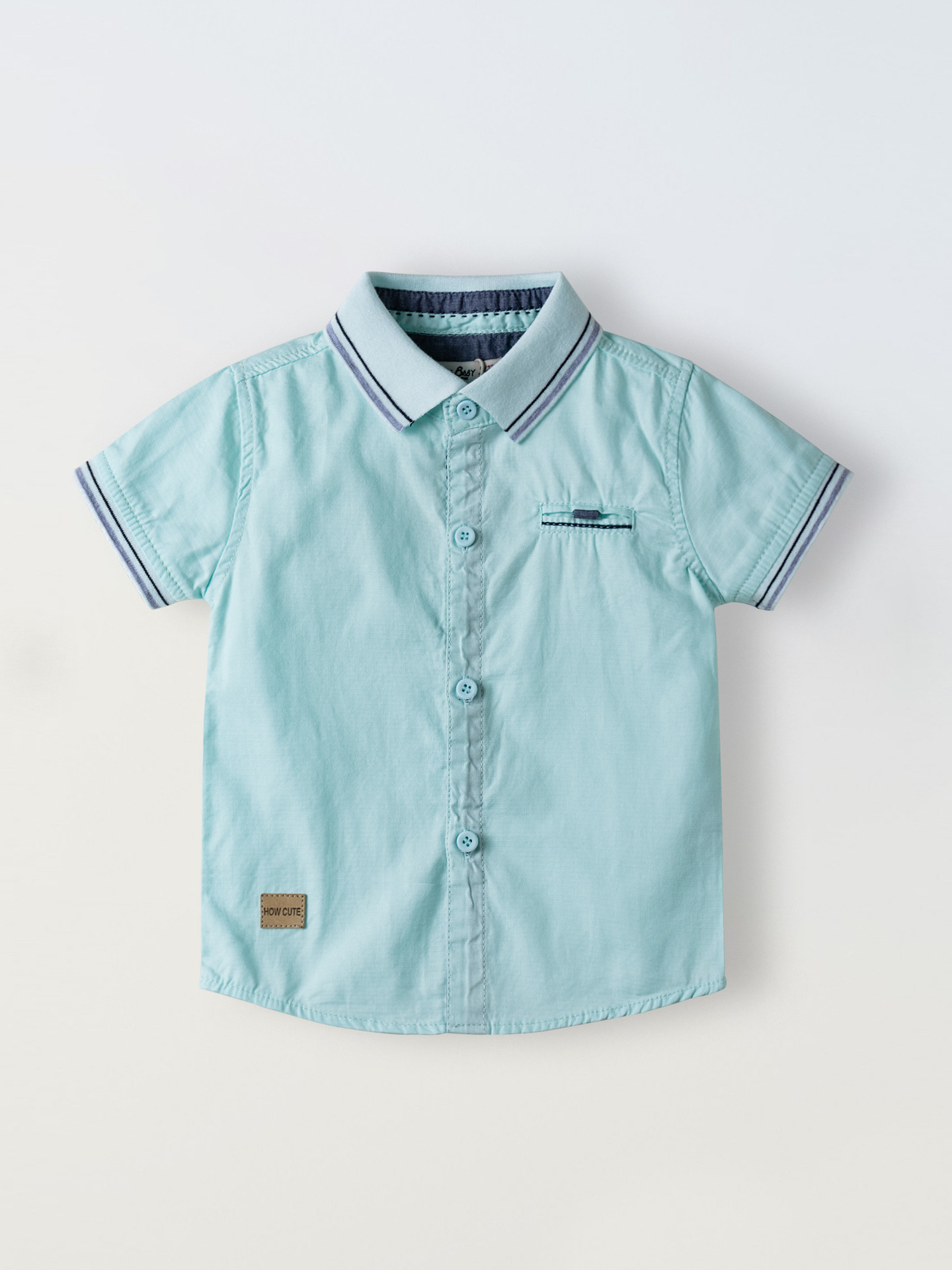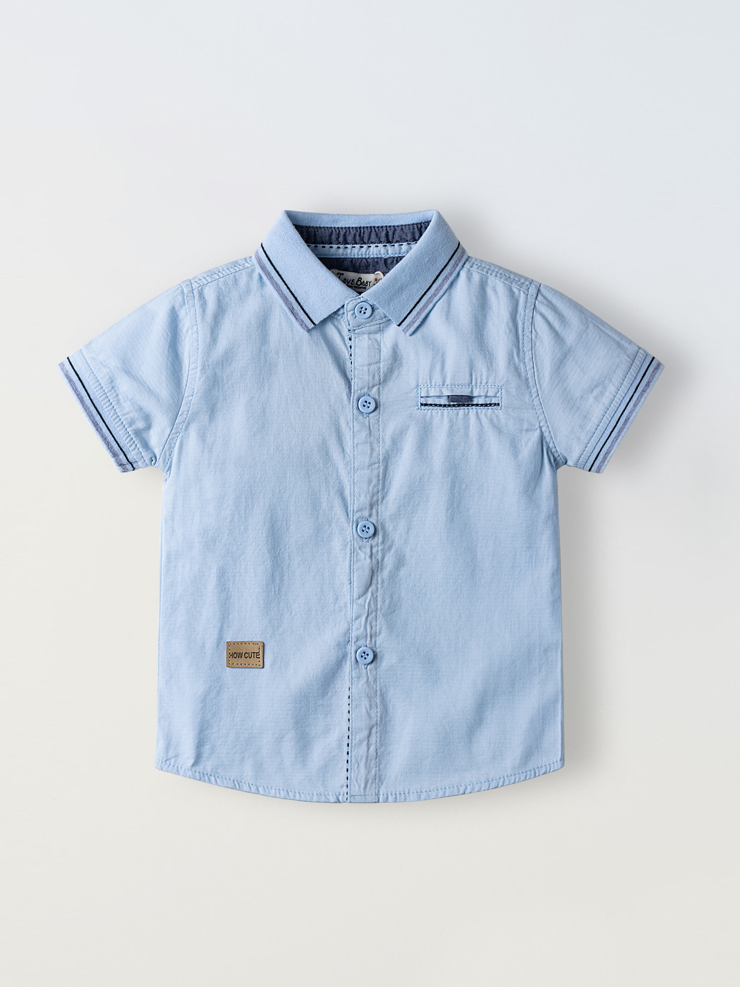소년 여름 셔츠 2024 여름 새로운 솔리드 컬러 늑골이있는 옷깃 탑 간단한 캐주얼 반팔 아동 셔츠스토어 가기