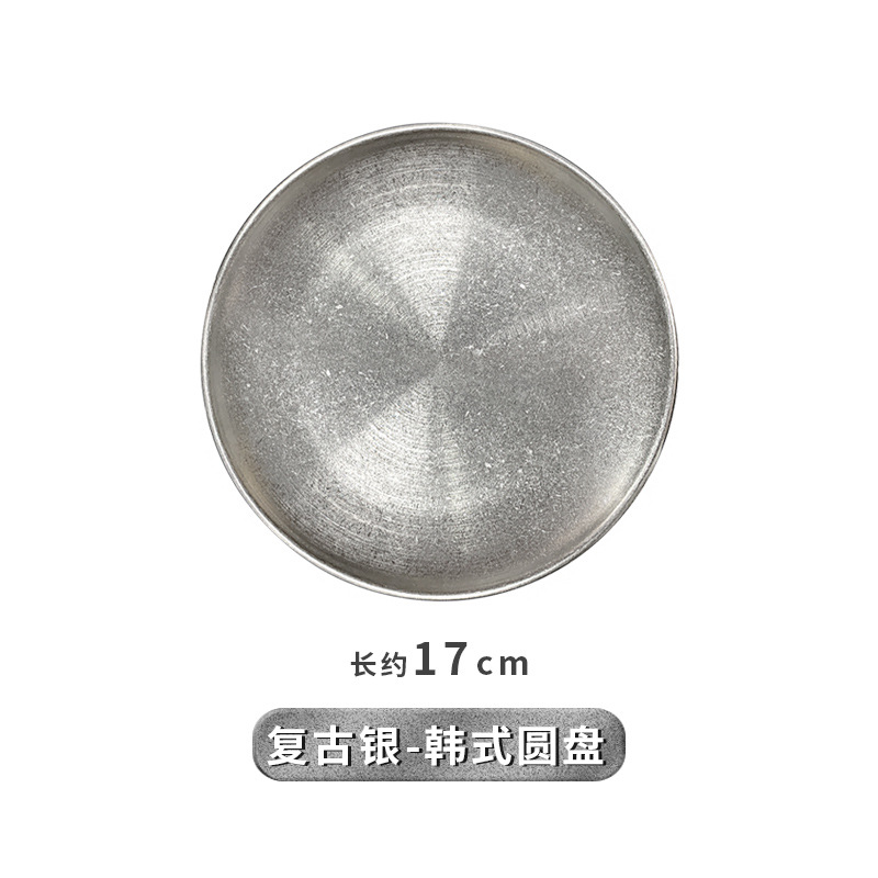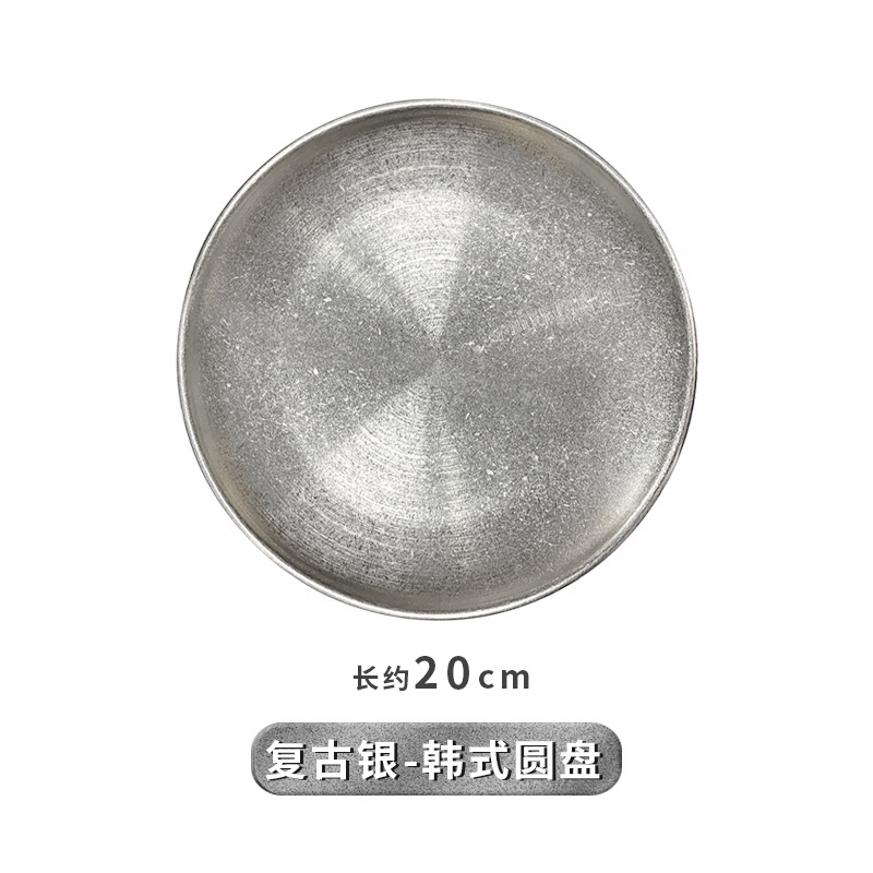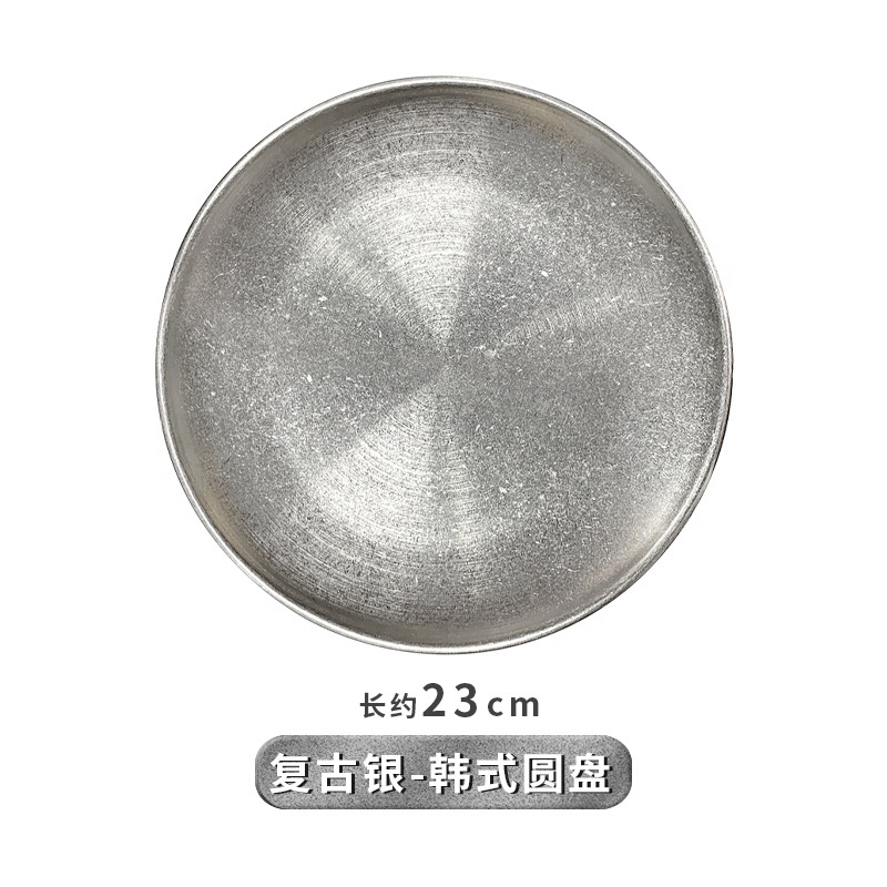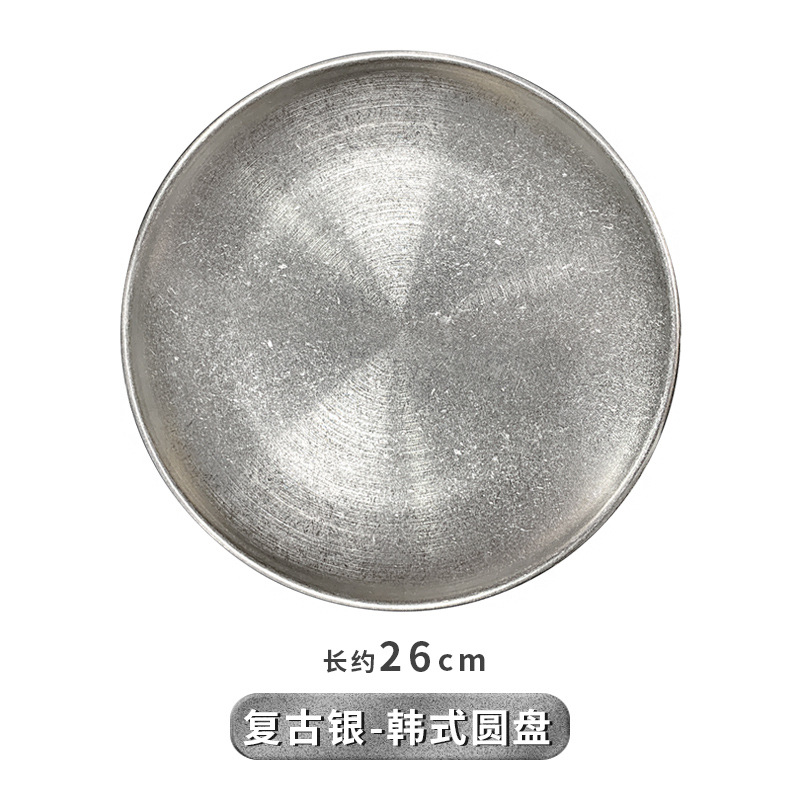 빈티지 식기 올드 스타일 스테인레스 스틸 바베큐 디스크 스테이크 트레이 야외 캠핑 디너 플레이트 일본 얕은 접시 뼈 플레이트스토어 가기