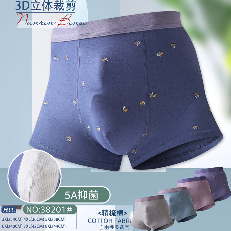 남성용 순면 프린트 단색 복서 팬티 시리즈 남성용 미드 웨이스트 복서 팬티 Yueba 직공급스토어 가기