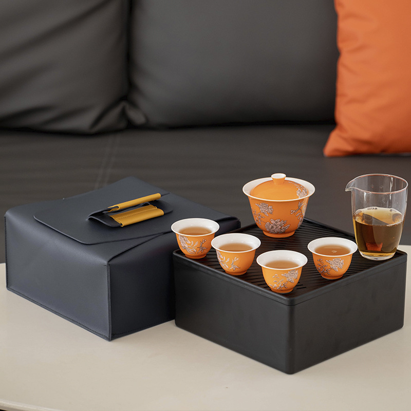 휴대용 여행 차 세트 세트 휴대용 야외 차 컵 사무실 세트 커버 그릇 페어 컵 4 컵 선물스토어 가기