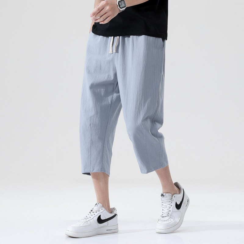반바지 남자의 여름 면 및 린넨 카프리 바지 느슨한 플러스 사이즈 비치 바지 스포츠 캐주얼 바지 남자의 카프리 바지