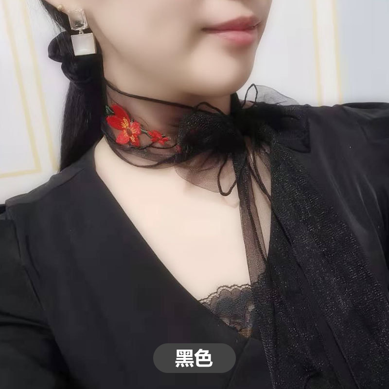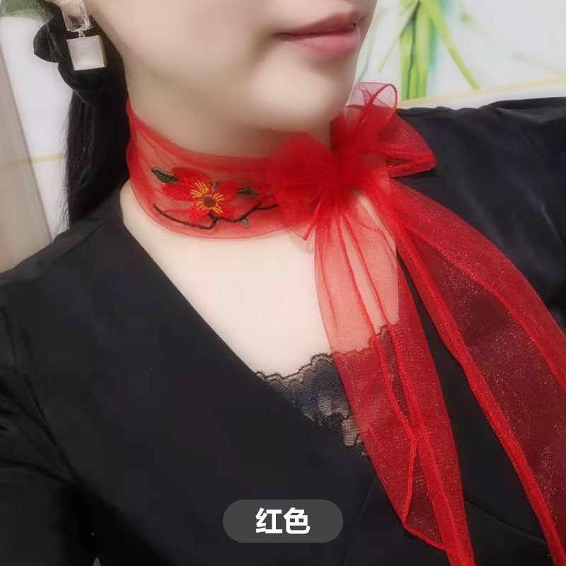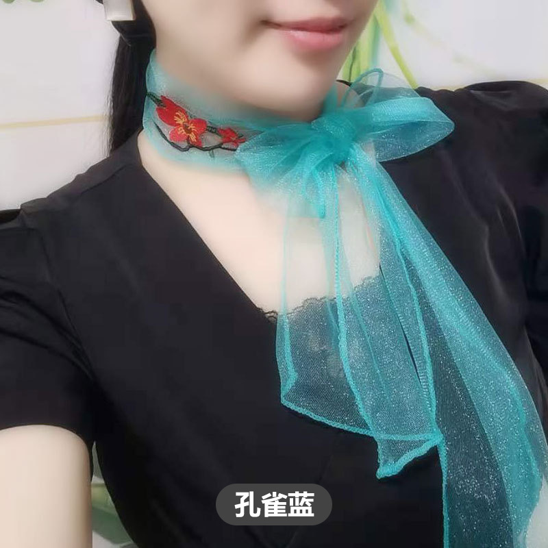 여자의 얇은 봄과 가을 자수 나비 목 보호 스카프 여자의 모든 일치 유행 한국 장식 스카프 여성