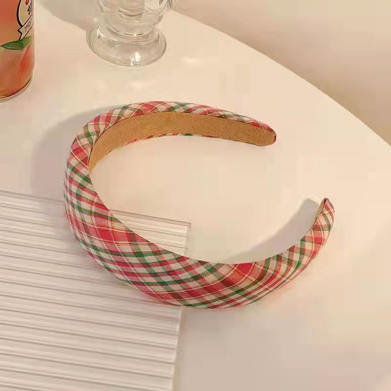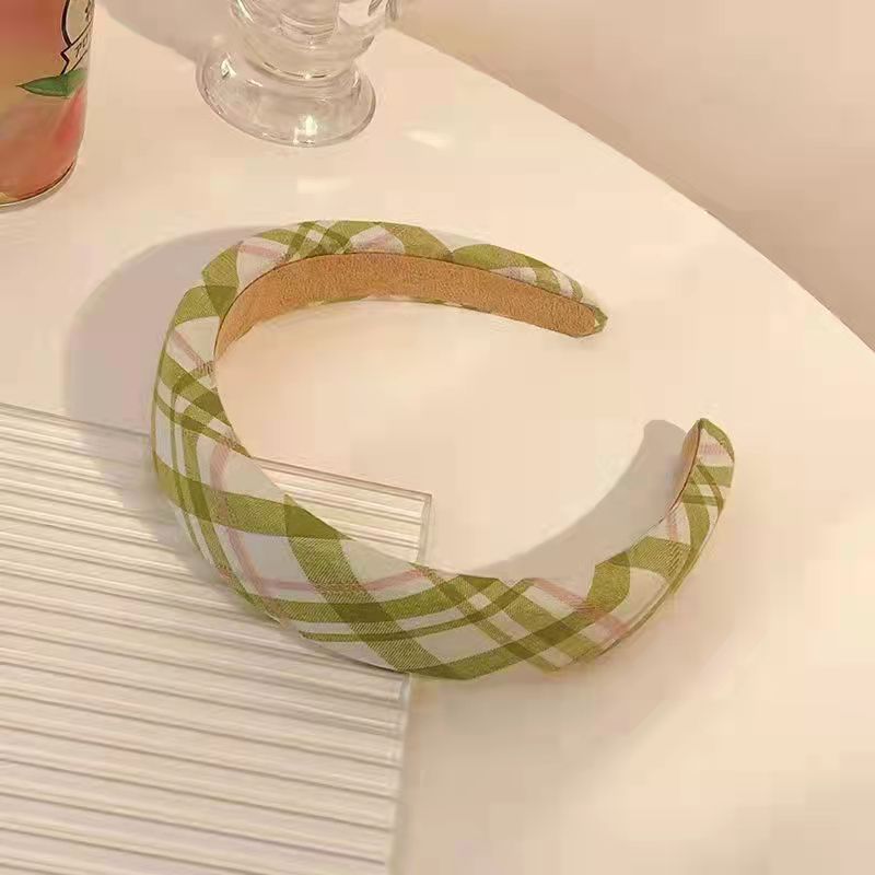 간단한 틈새 한국 작은 신선한 녹색 줄무늬 스폰지 머리띠 패션 머리띠 인터넷 빨간 격자 무늬 우아한 헤어 액세서리