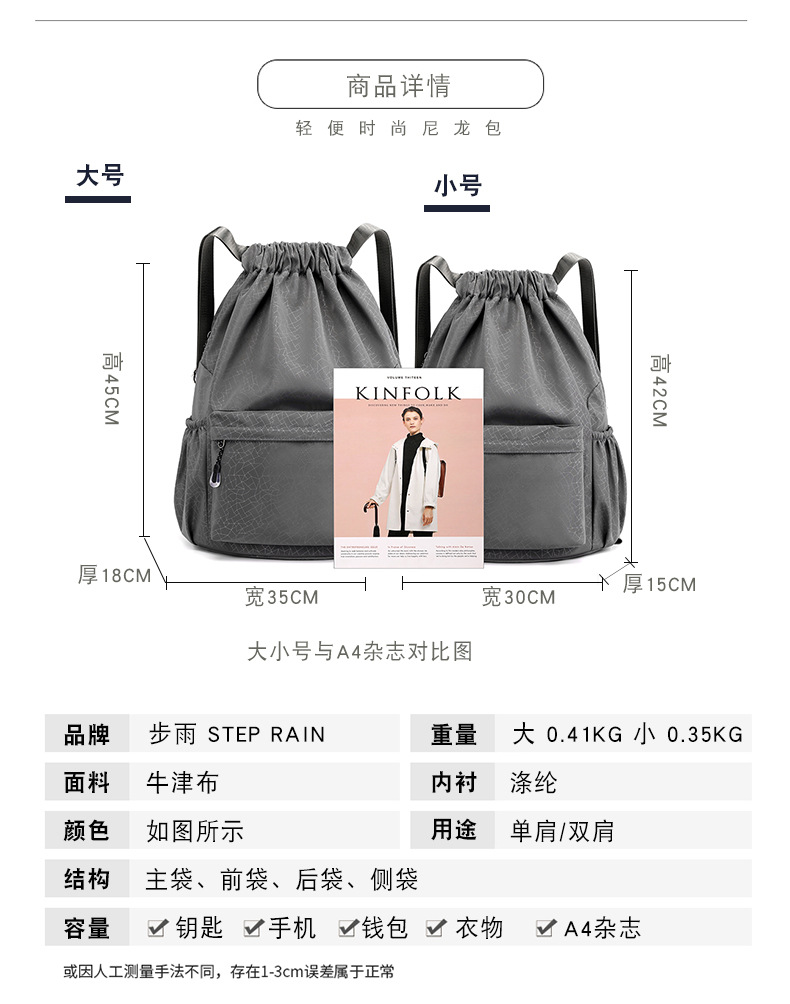 도매 숙녀 Drawstring 배낭 농구 피트니스 가방 솔리드 컬러 어두운 패턴 Drawstring 가방 여성 대용량 배낭 다목적