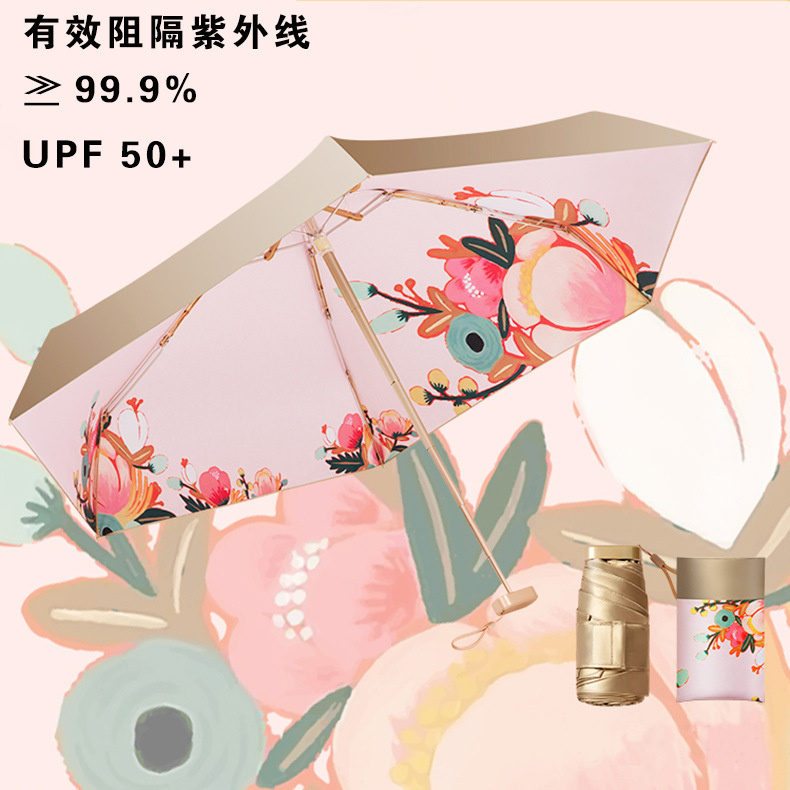 轻盈。仅140g,约4支口红重量,携带无负重感,出行0负担 专业防晒。 UPF>50+,超密高 柔哑光黑胶涂层碰击布,零透光,阻隔99.9%紫外光,伞下 最高降温12°C,