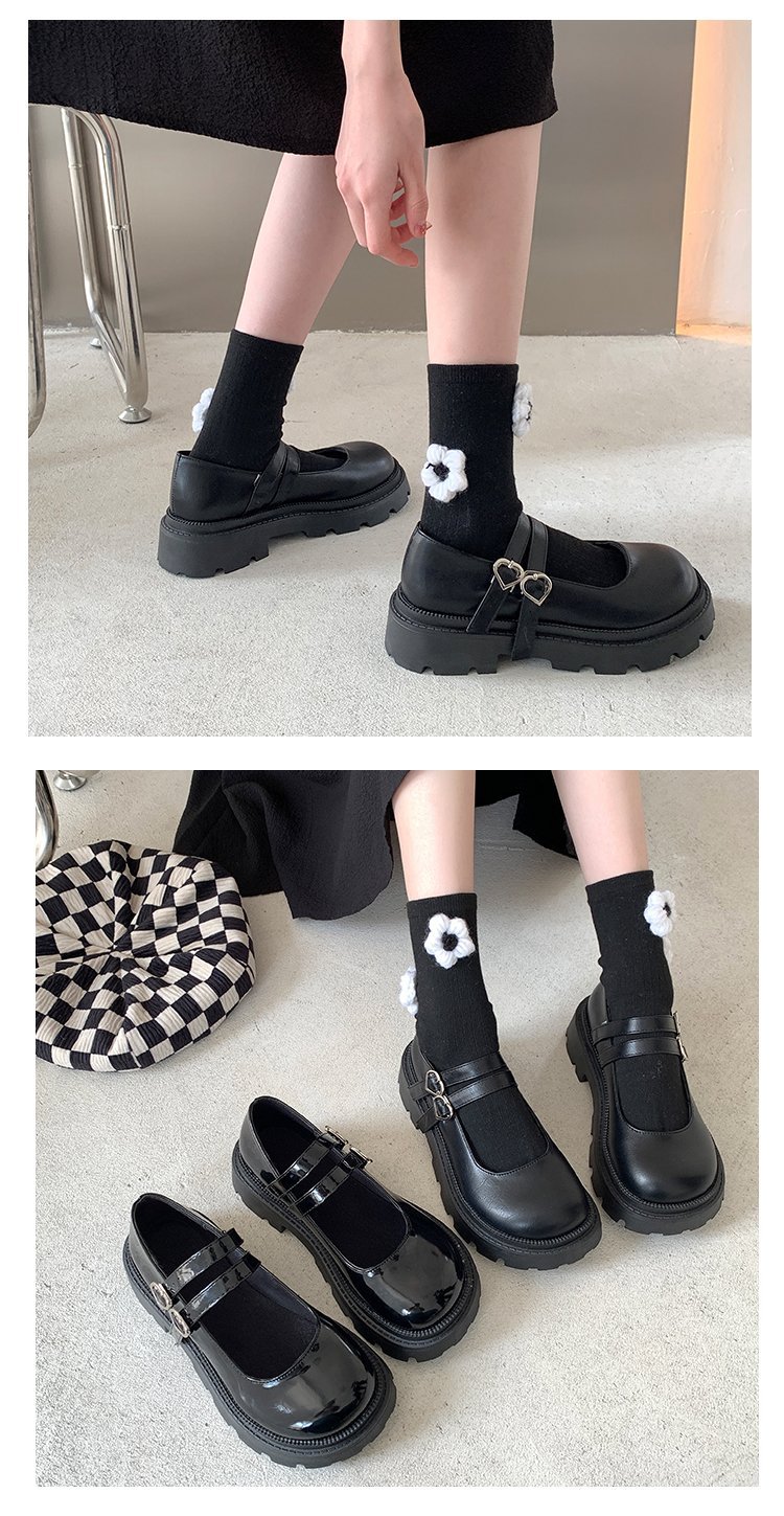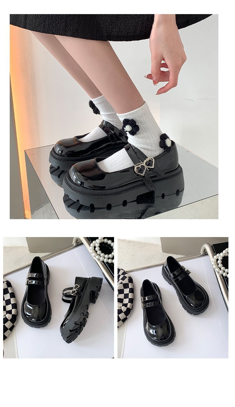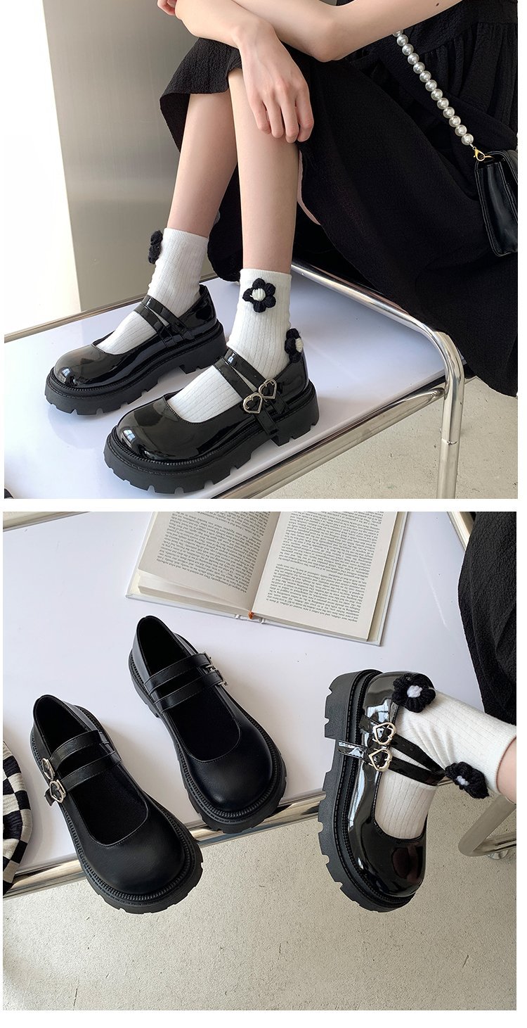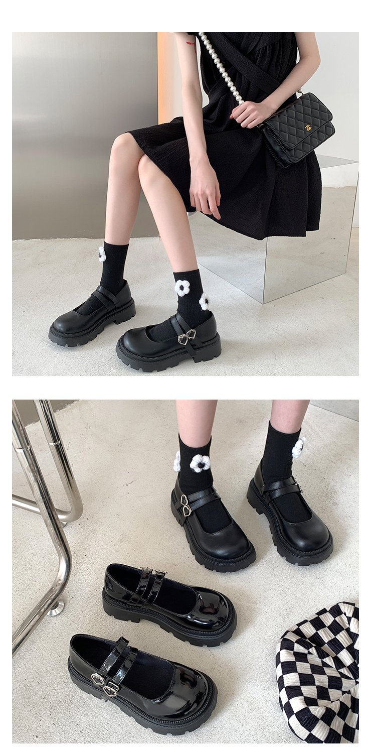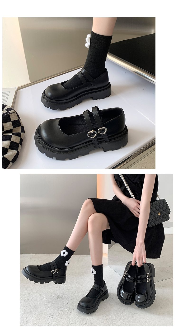 메리제인 여성용 가죽 신발 2024 신상 영국풍 두꺼운 밑창 슬립온 로퍼 스커트와 함께 입는 달콤하고 시크한 일본 스타일 신발스토어 가기