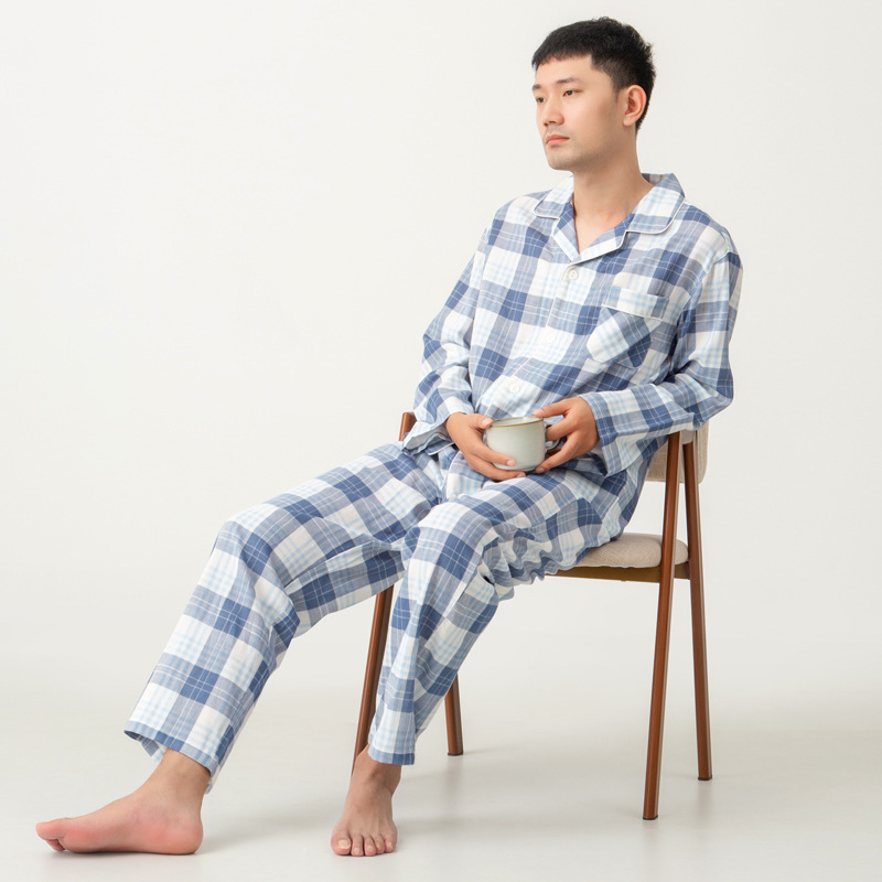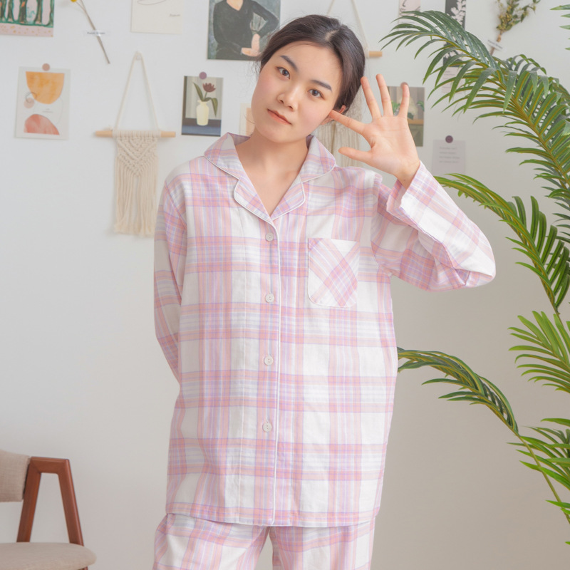 특별가 면사 잠옷 여성용 봄 가을 순면 이중 거즈 여름 커플 잠옷 무지 남성용 홈웨어