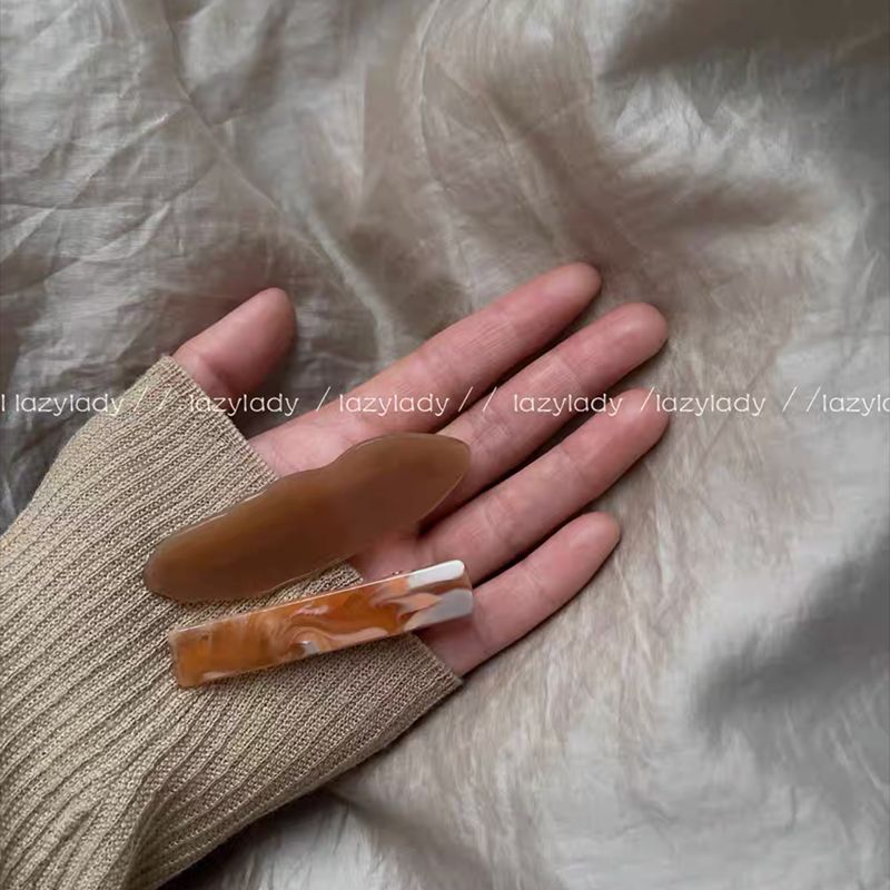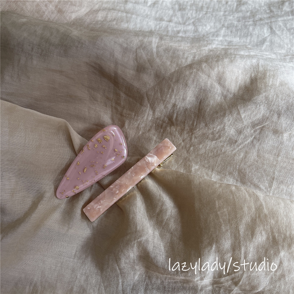 한국 우아한 앰버 핑크 오리 빌 클립 앞머리 클립 원활한 깨진 머리핀 머리핀 대리석 가장자리 클립 헤어 액세서리