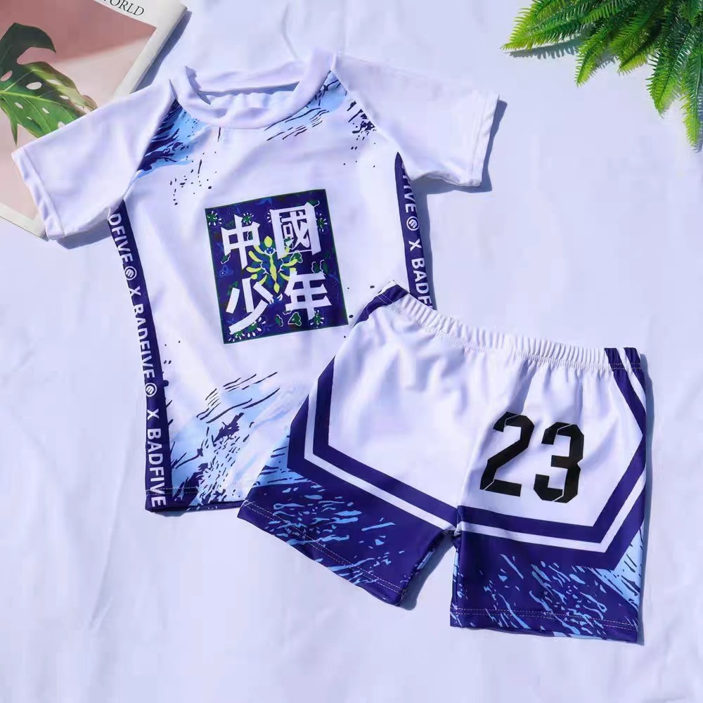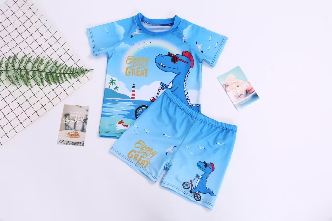 어린이 수영복 소년의 분할 수영 트렁크 세트 소형, 중형 및 대형 어린이 속건 태양 보호 만화 귀여운 아기 수영 장비