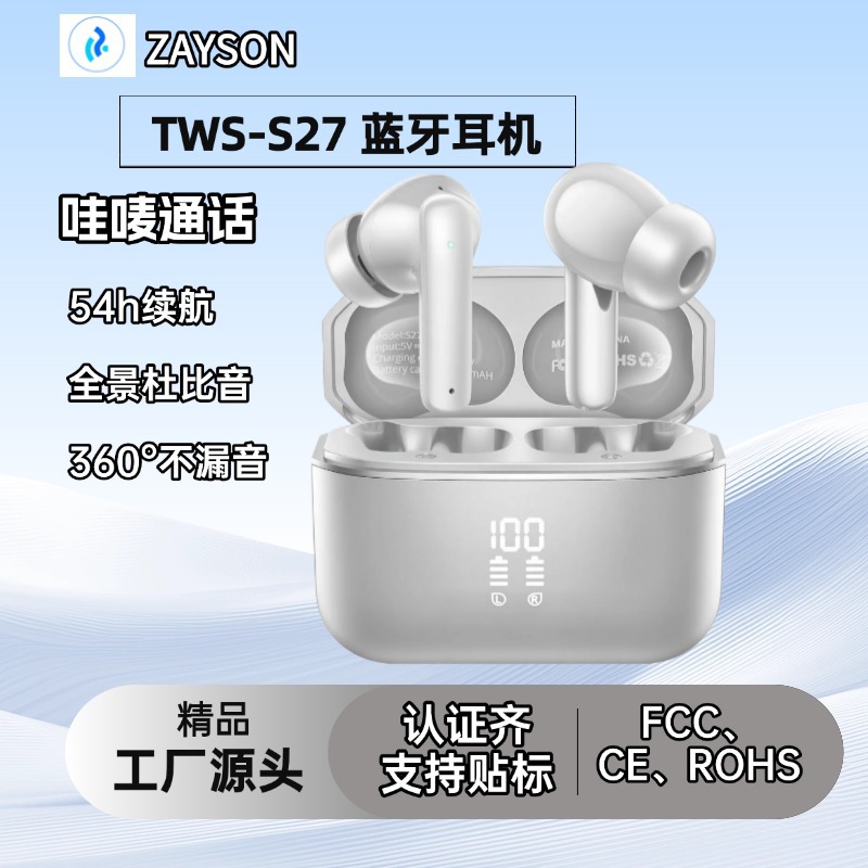 공장 새 S27 대외 무역 TWS 무선 블루투스 5.3 헤드셋 반투명 고화질 디지털 디스플레이 소음 감소 바디 사운드 헤드셋스토어 가기