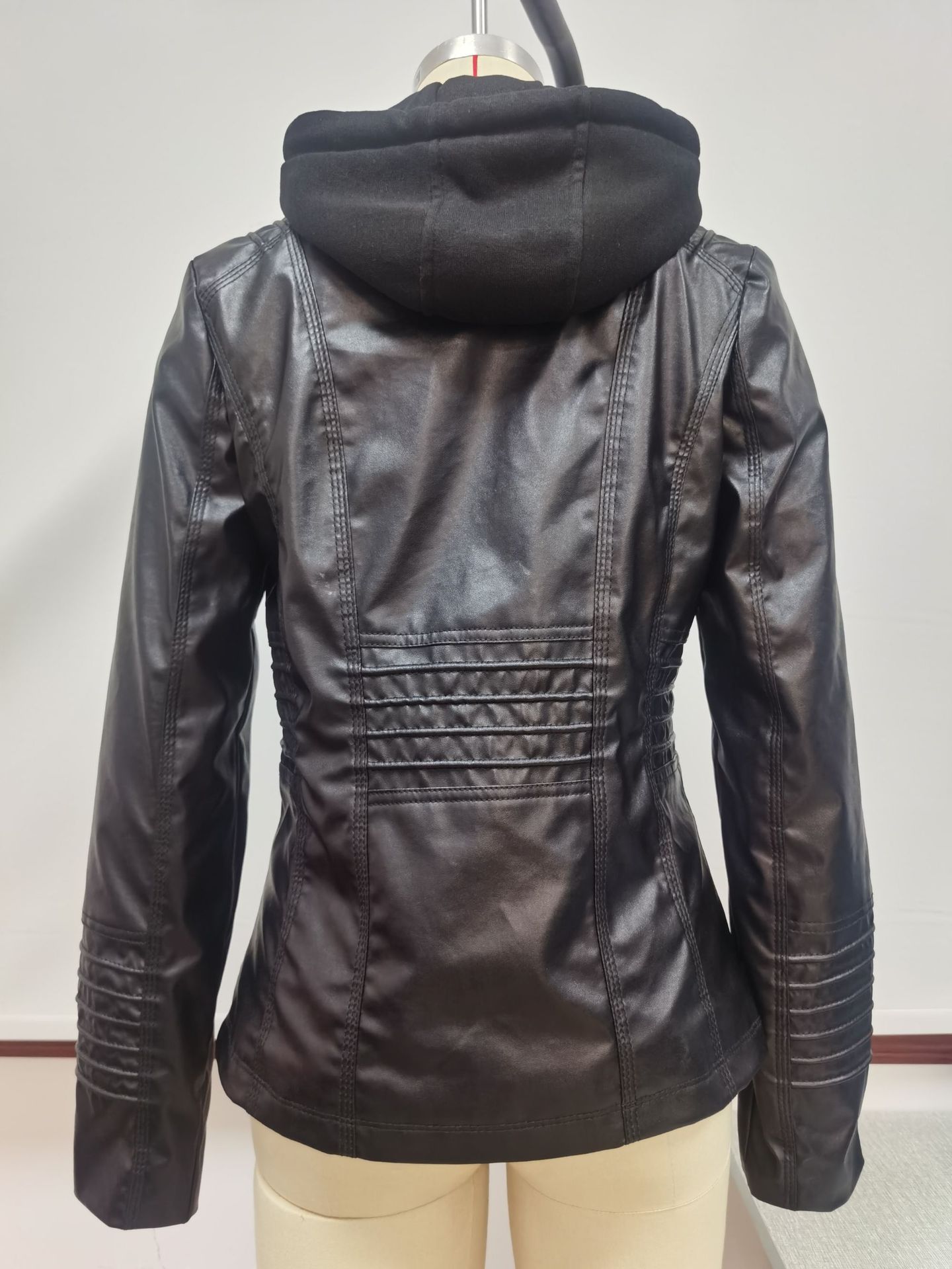 아마존 캐주얼 만능 유럽풍 긴팔 여성 가죽 자켓 PU 가죽 쇼트 자켓 여성 바이커 자켓스토어 가기