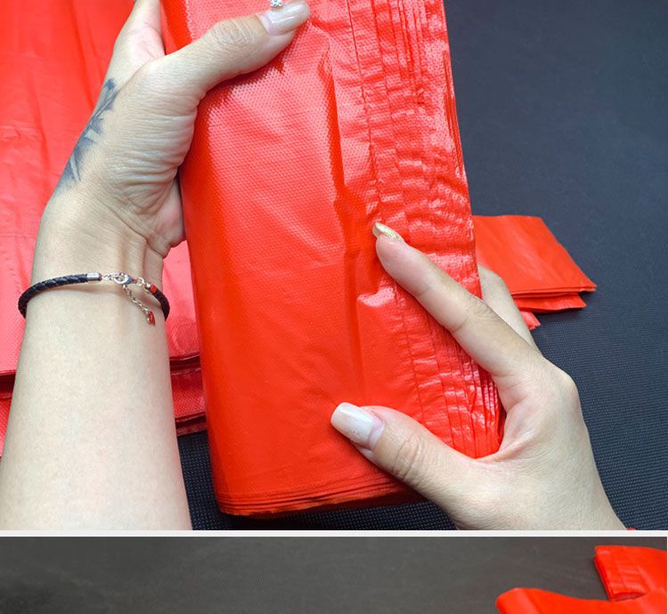 Jie Sifang은 야채와 생선을 판매하는 큰 빨간색 비닐 봉지의 무게 대형 조끼 휴대용 포장 가방 소스 제조 업체